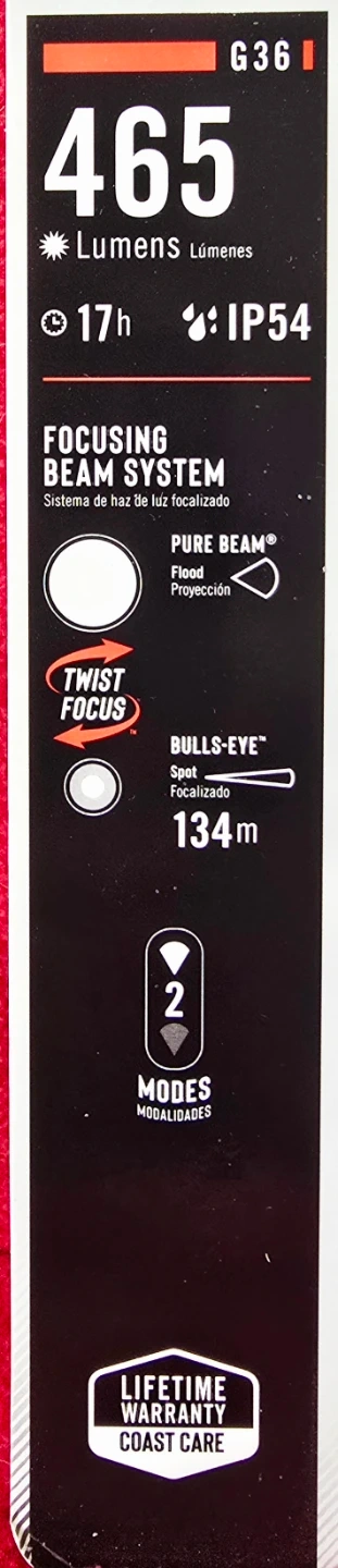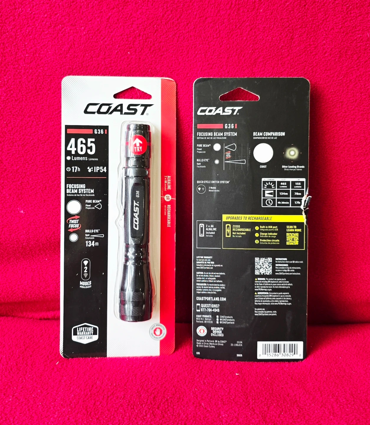 This COAST G36 flashlight offers a 465 lumen output with a focusing beam system.