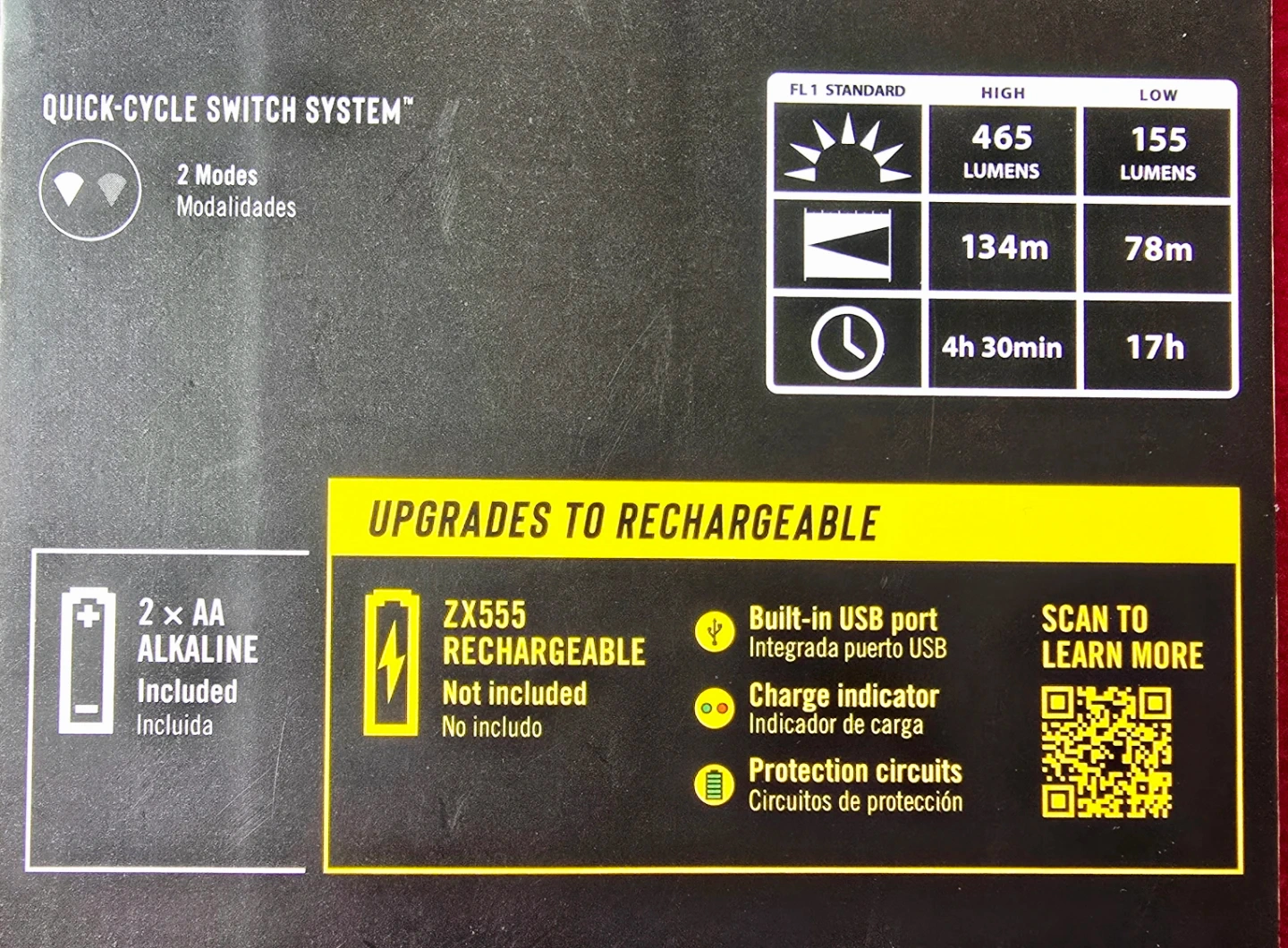 It features two modes and a Bulls-Eye Spot beam that reaches up to 134 meters.