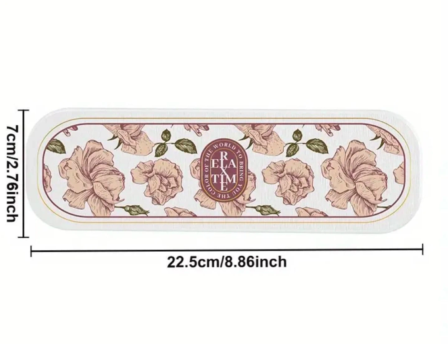 Oval-shaped bathroom mat. Features a floral design. Measures 22.5cm x 7cm. Adds a touch of elegance to your bathroom.