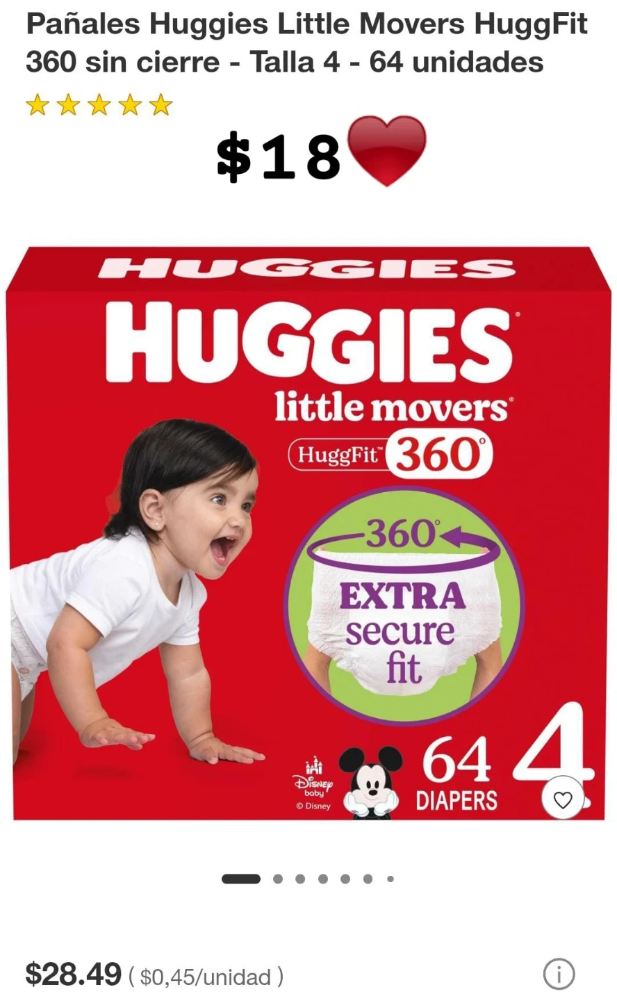 Huggies Little Movers HuggFit diapers are designed for an extra secure fit with 360° protection. This pack includes 64 diapers in size 4. They're made with a pull-on style for easy changes.