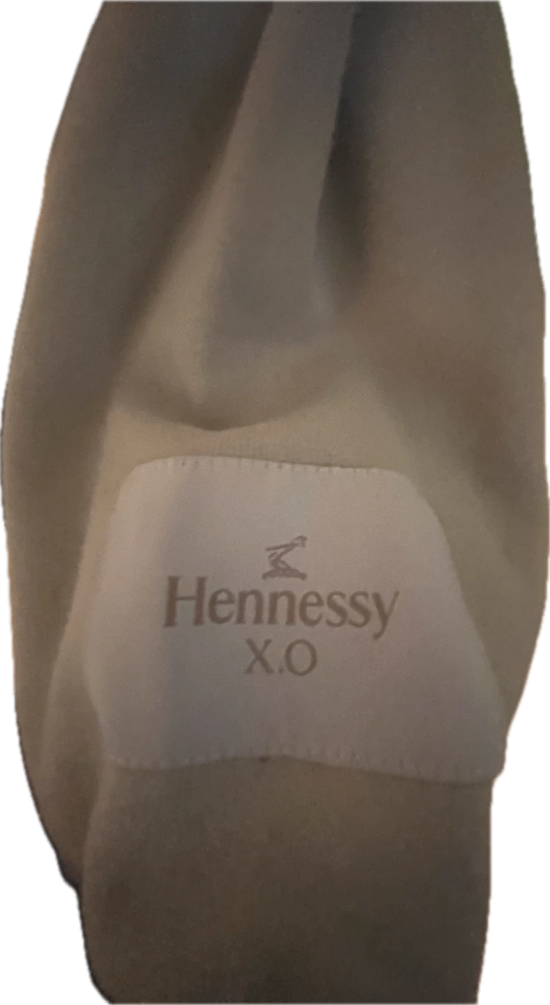 This is a Hennessy X.O. hoodie. It's a light gray color with a front pocket and a drawstring hood.