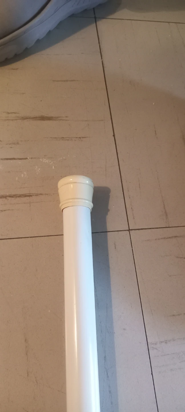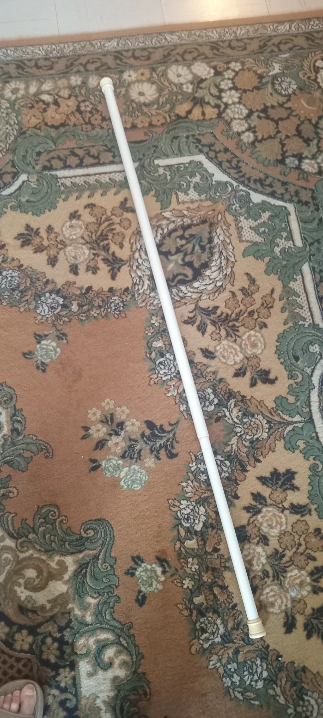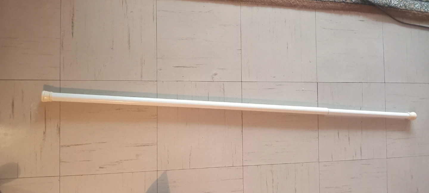 This is a white adjustable tension rod. It's great for hanging lightweight curtains or as a temporary closet rod. Simple to install, no tools required!