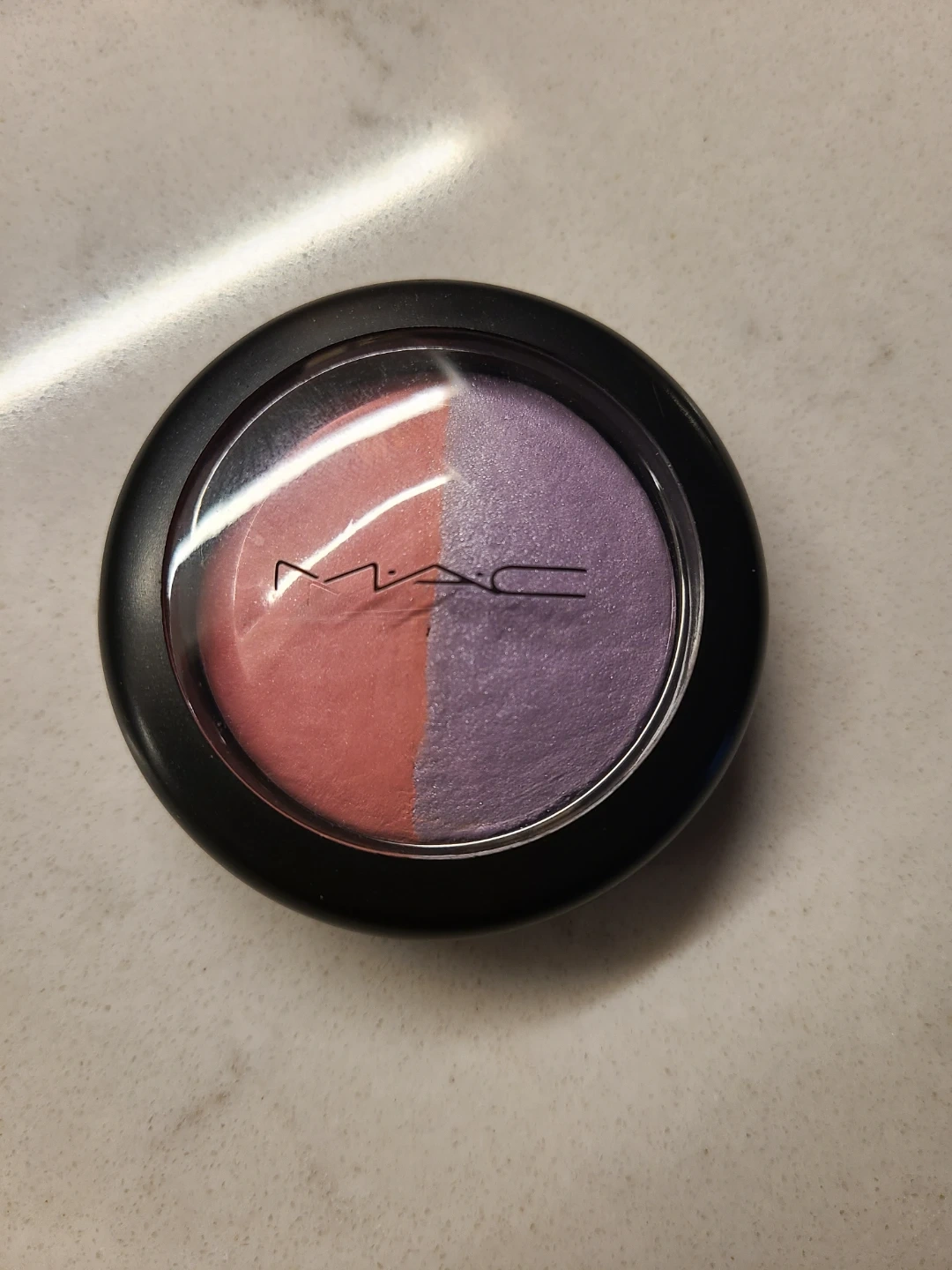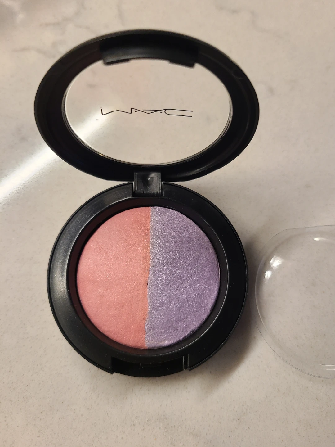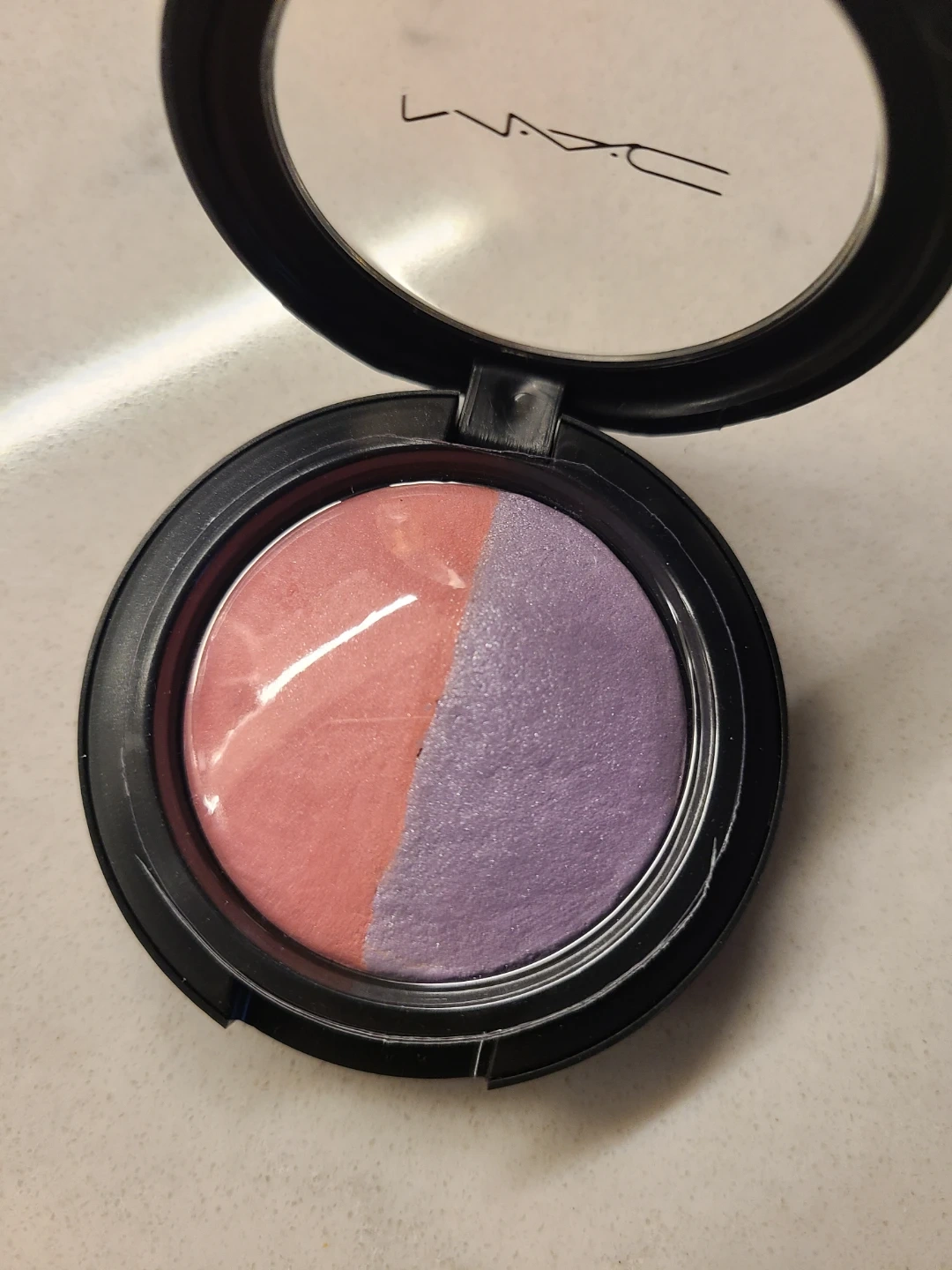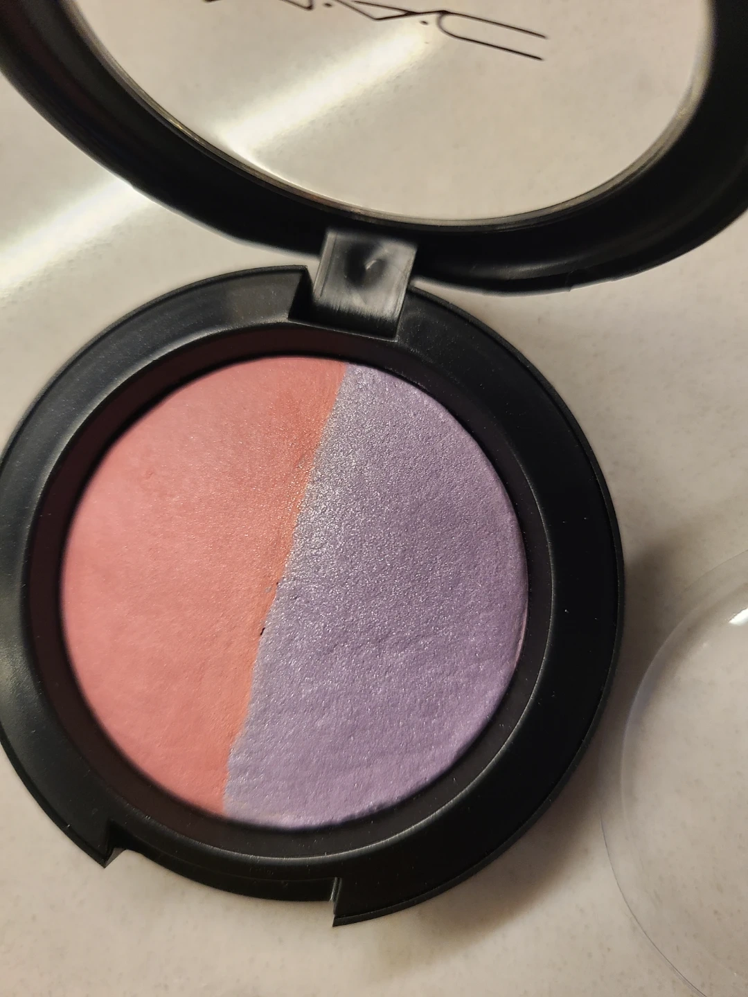 MAC Mineralize Blush in the shade 'Hang Loose'. It's a duo-colour blush with a pink and a lavender shade. Net weight is 3.2g/0.10 US oz. It's perfect for adding a pop of colour to your cheeks!
