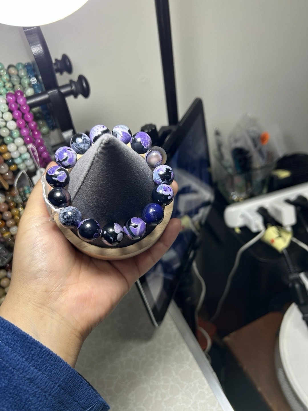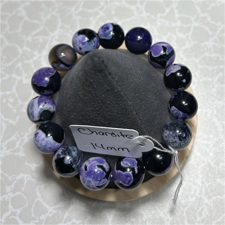 Handcrafted Charoite Beaded Bracelet - 14mm Purple/Black Gemston