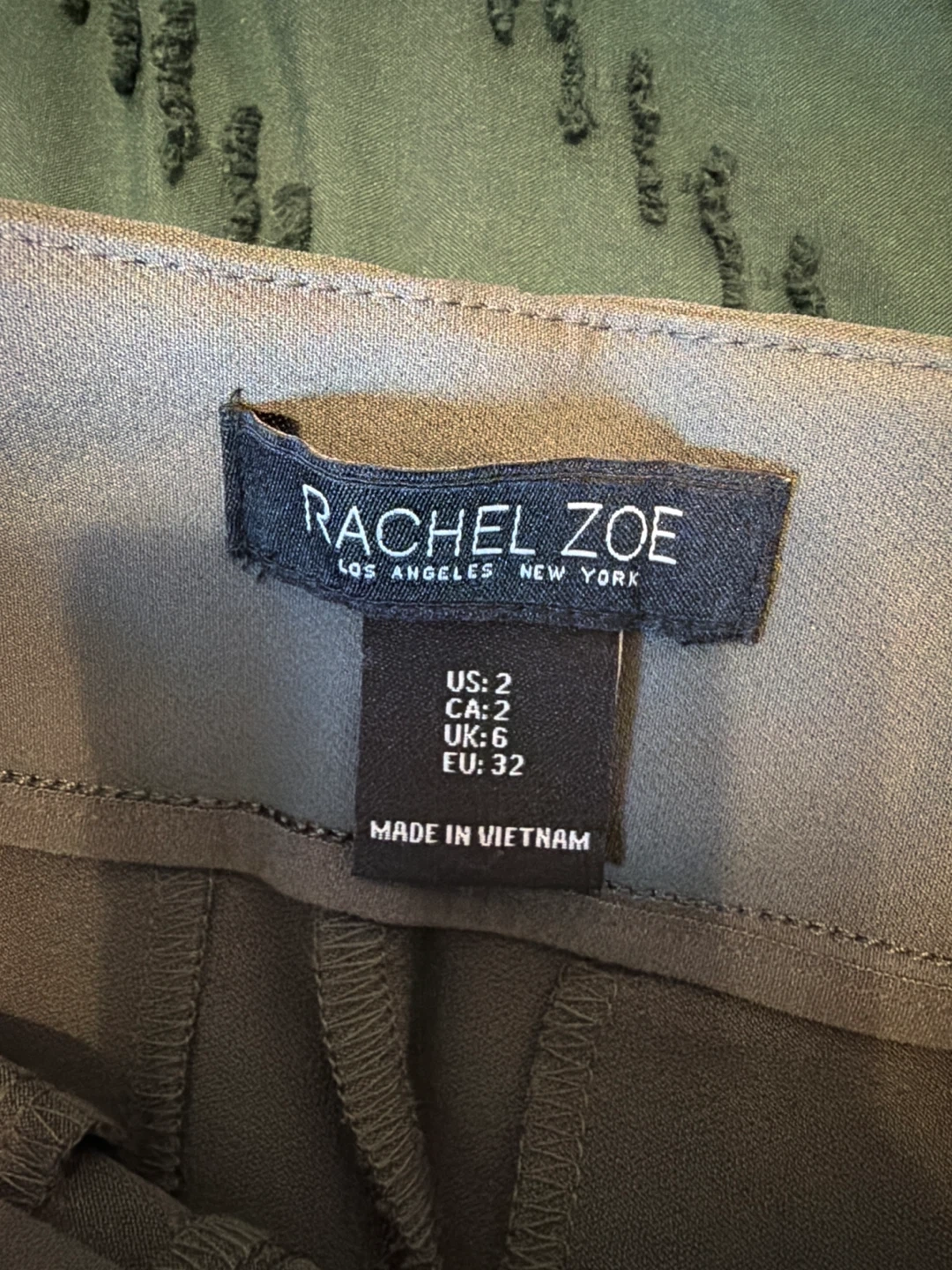 These Rachel Zoe dress pants are a chic gray color. They come in a US size 2 and feature a stylish belted waist. Made in Vietnam.