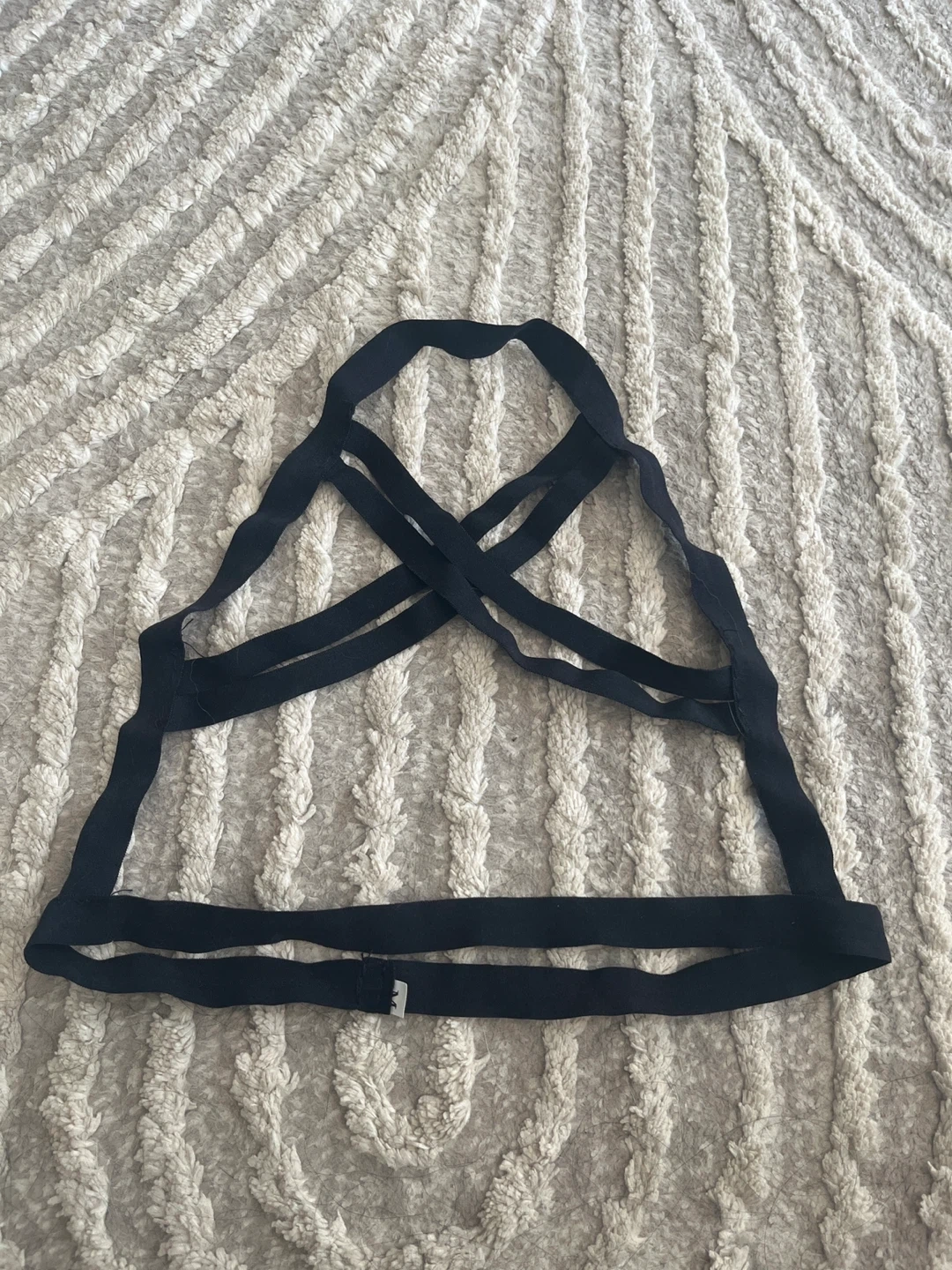 This black strappy bralette is designed with a unique criss-cross strap detail. It's made from a stretchy, comfortable fabric perfect for layering. Great for adding a bit of flair under a tank top or sheer shirt!