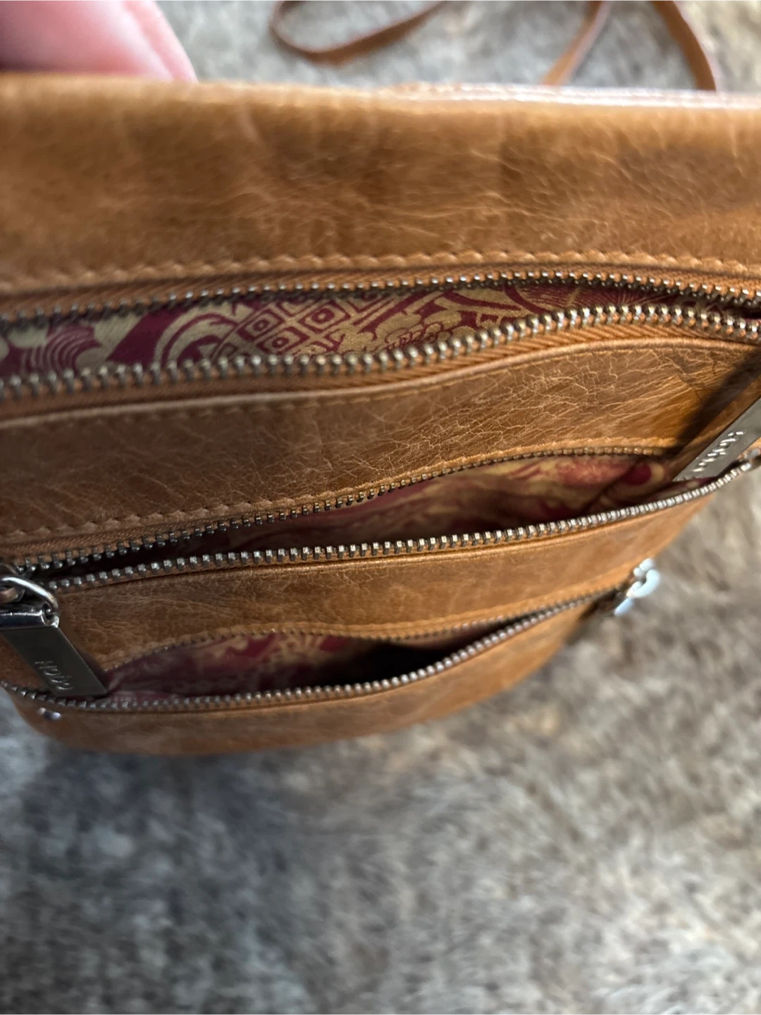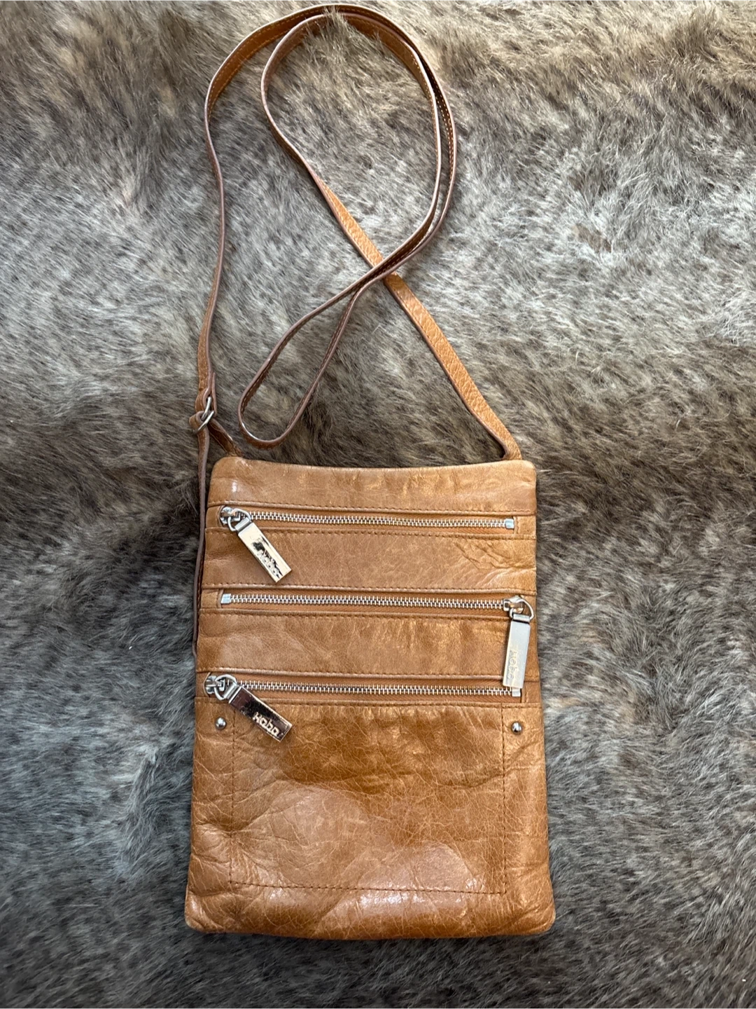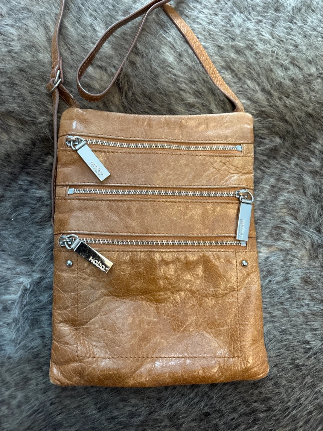 HOBO brand brown leather crossbody bag. It's got multiple zippered (3) pockets for organization. Great for everyday use!