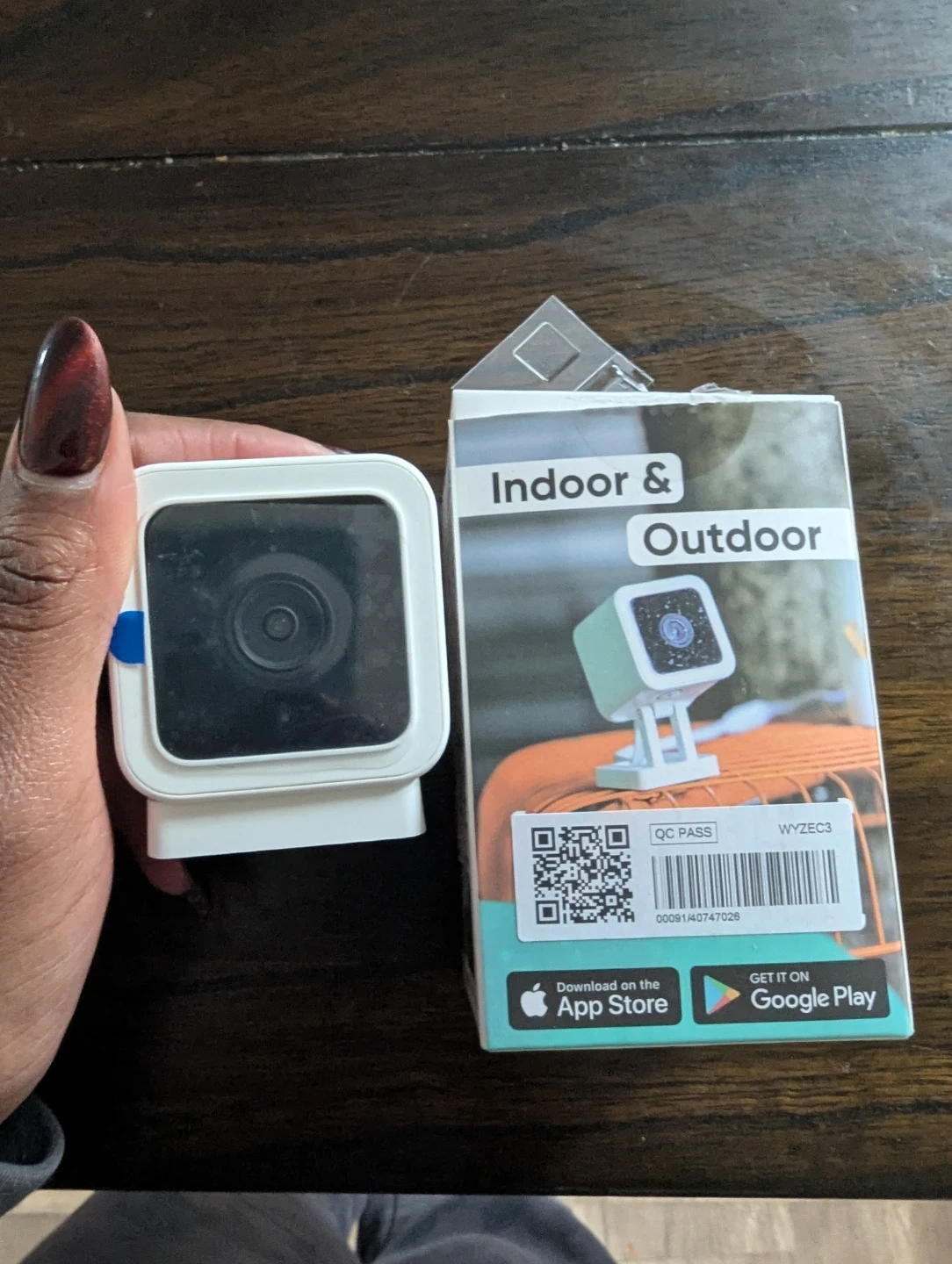 Wyze Cam v3 security camera for indoor and outdoor use. It's a versatile camera suitable for monitoring your home or yard. The camera offers clear footage for peace of mind.