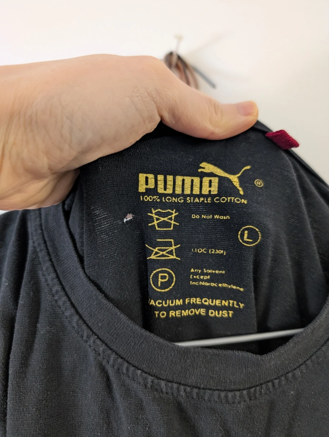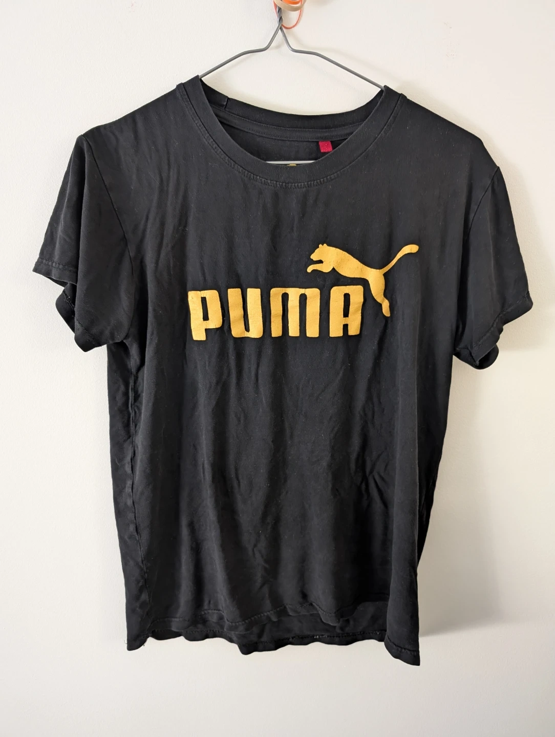 Puma Black 100% Cotton Gold Logo T-Shirt small hole at the back