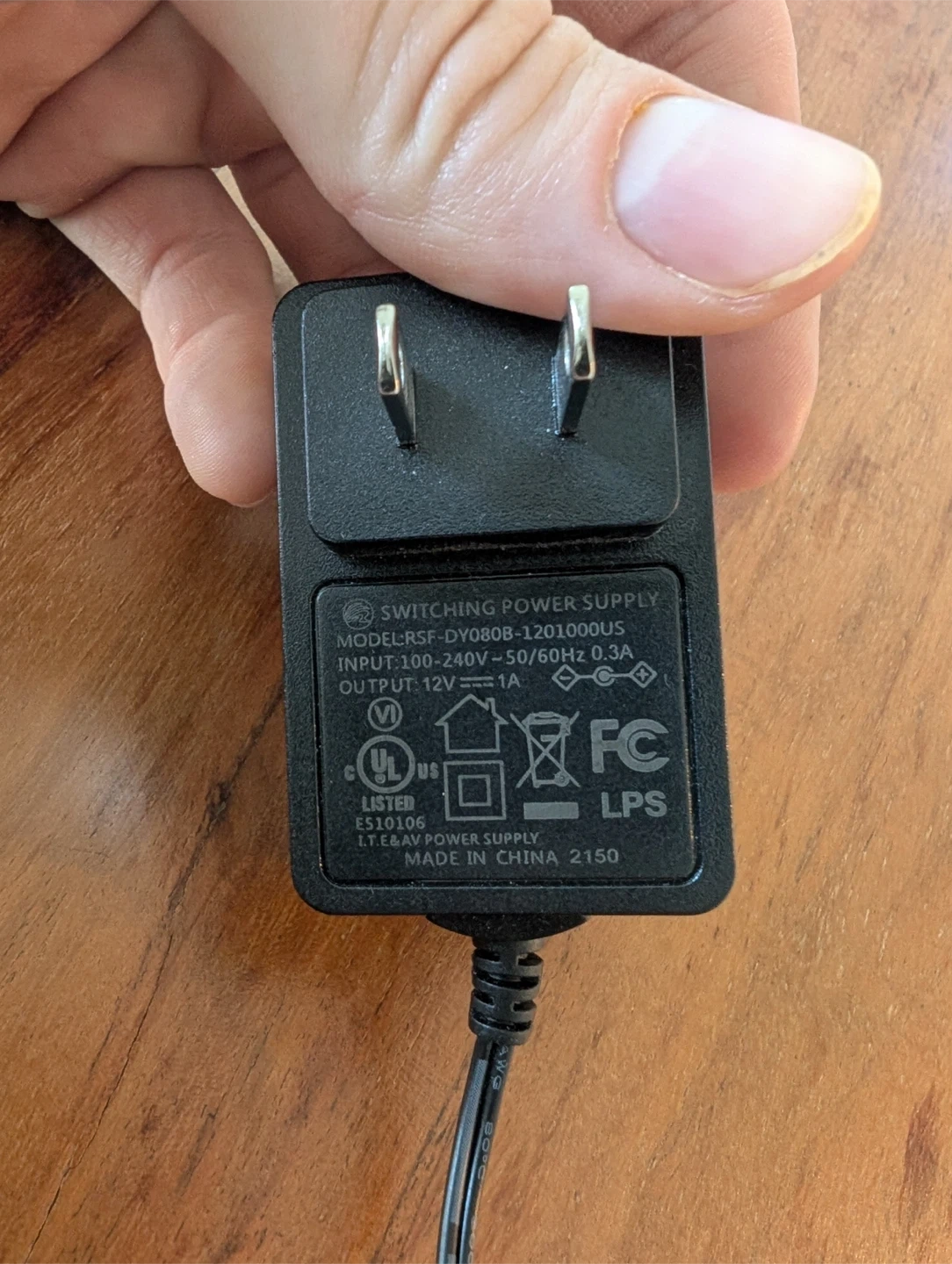This is a switching power supply adapter with a 12V and 1A output. The input is rated for 100-240V~50/60Hz 0.3A.