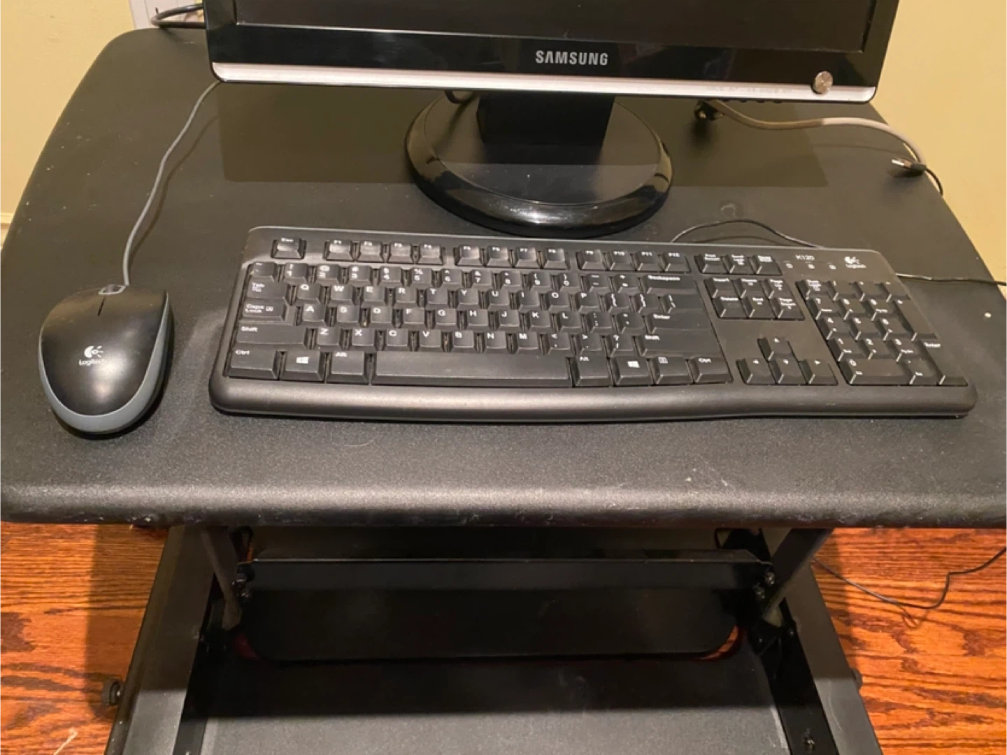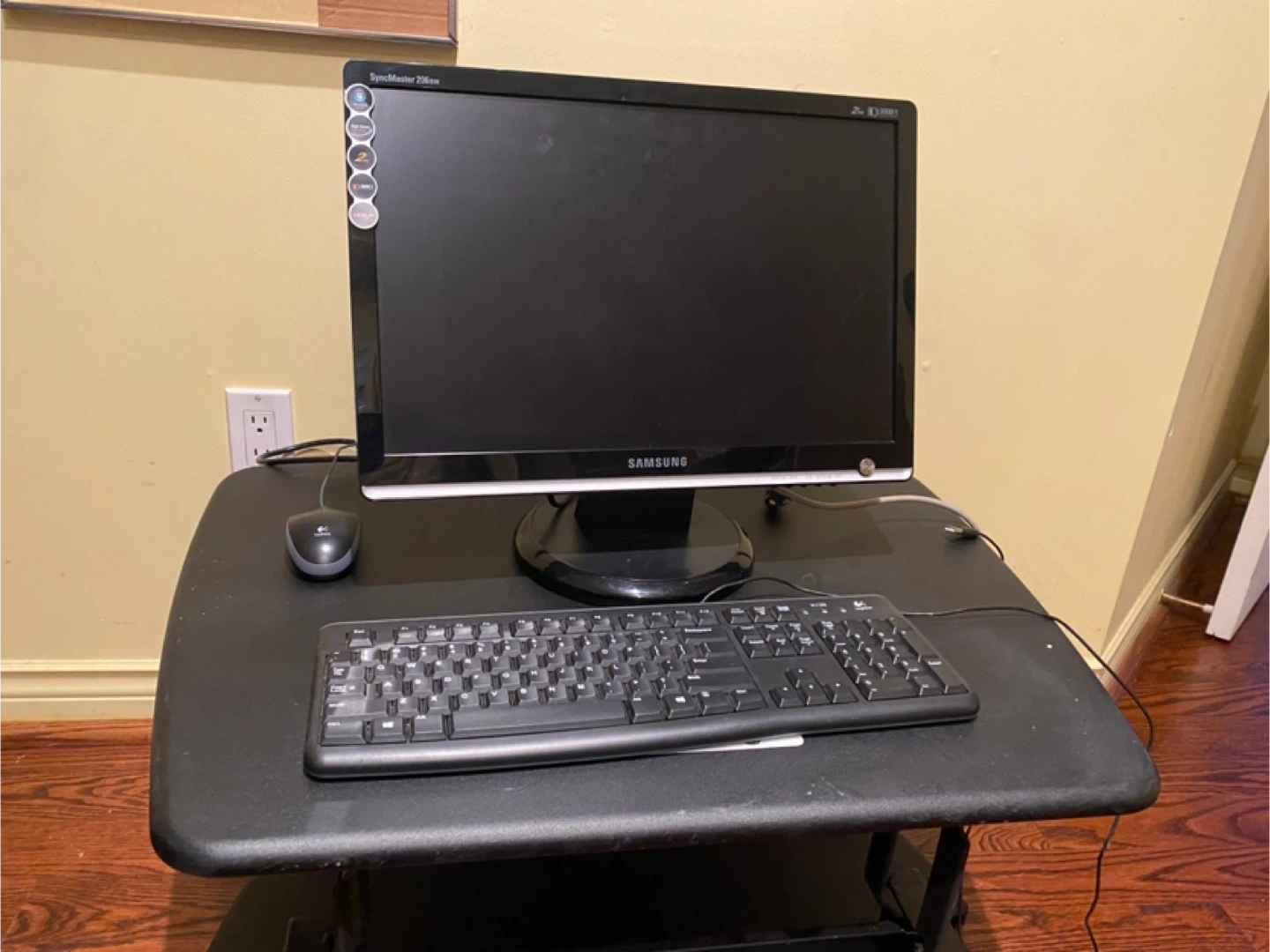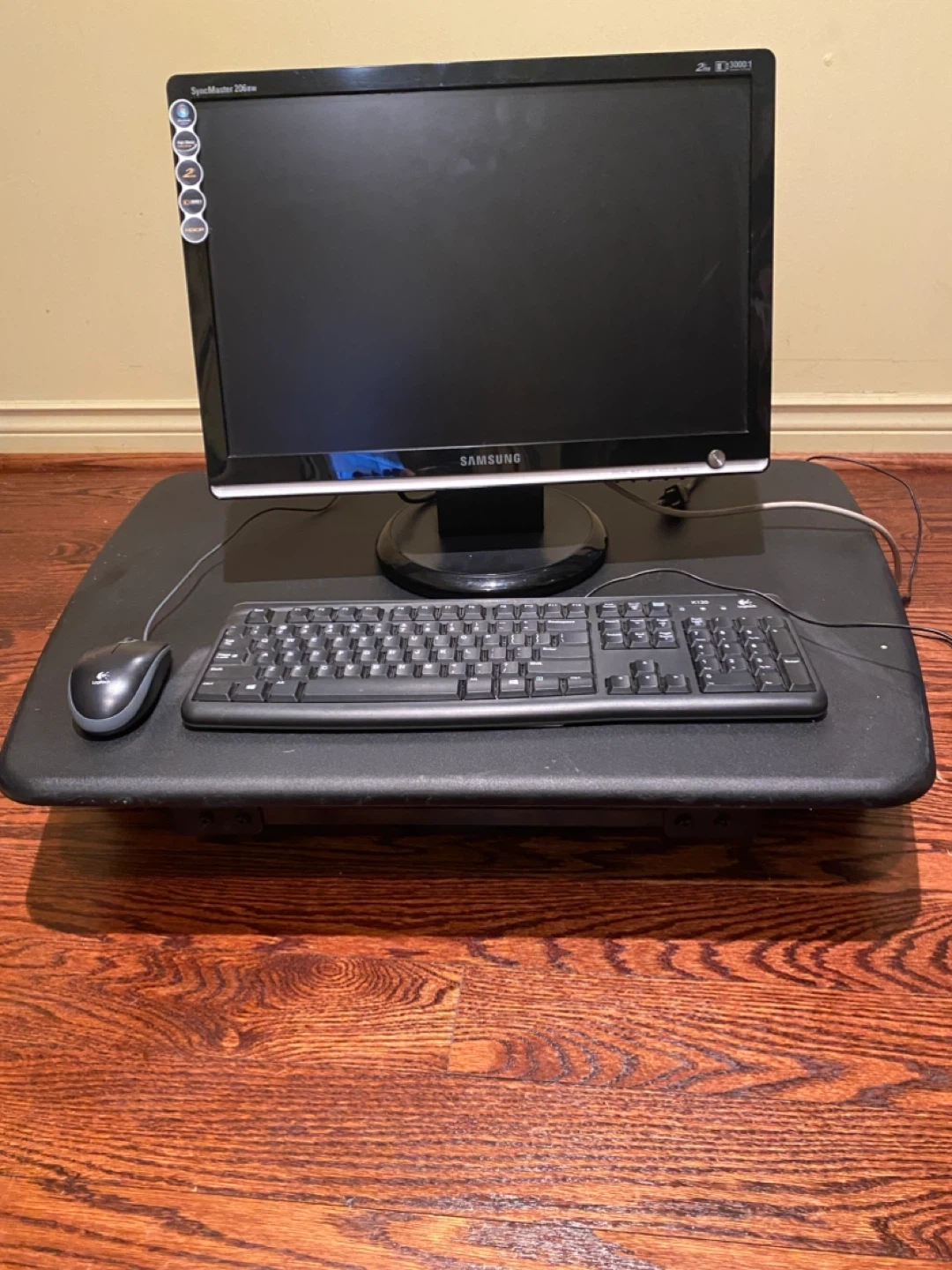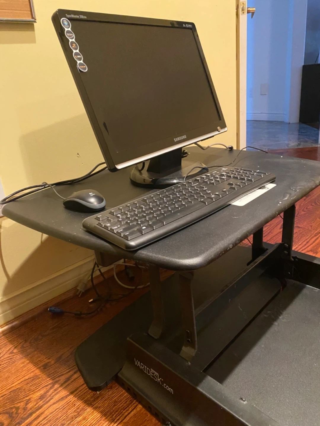 Selling as a lot with the screen, keyboard, mouse and varidesk.