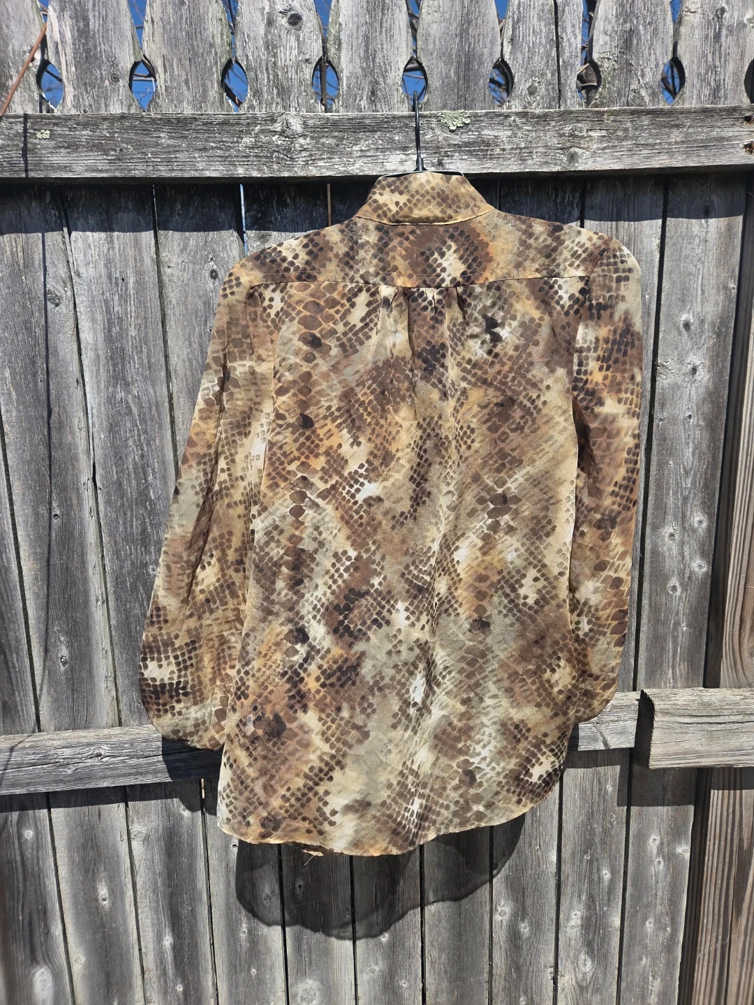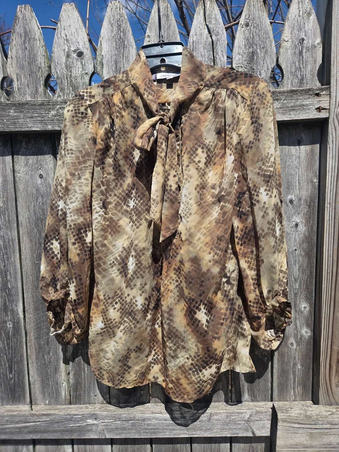 Buy & SellJennifer Lopez Brown Snake Print Sheer Long Sleeve Blouse XSJennifer Lopez Brown Snake Print Sheer Long Sleeve Blouse XS$10Brown sheer long sleeve blouse with a snake print design. Features a tie-neck and button-up front. Made of 100% polyester. Size XS.SizexsWHERE TO MEETUniondale Public LibraryView MapSELLERverifiedMrs MissySouth Hempstead650 reviews0 chats·0 favorites·3 viewsSEND CHAT TO SELLERHi Mrs Missy! I’m interested in your listing.Hi Mrs Missy! I’m interested in your listing.Get the Karrot app to chatSign In to chat