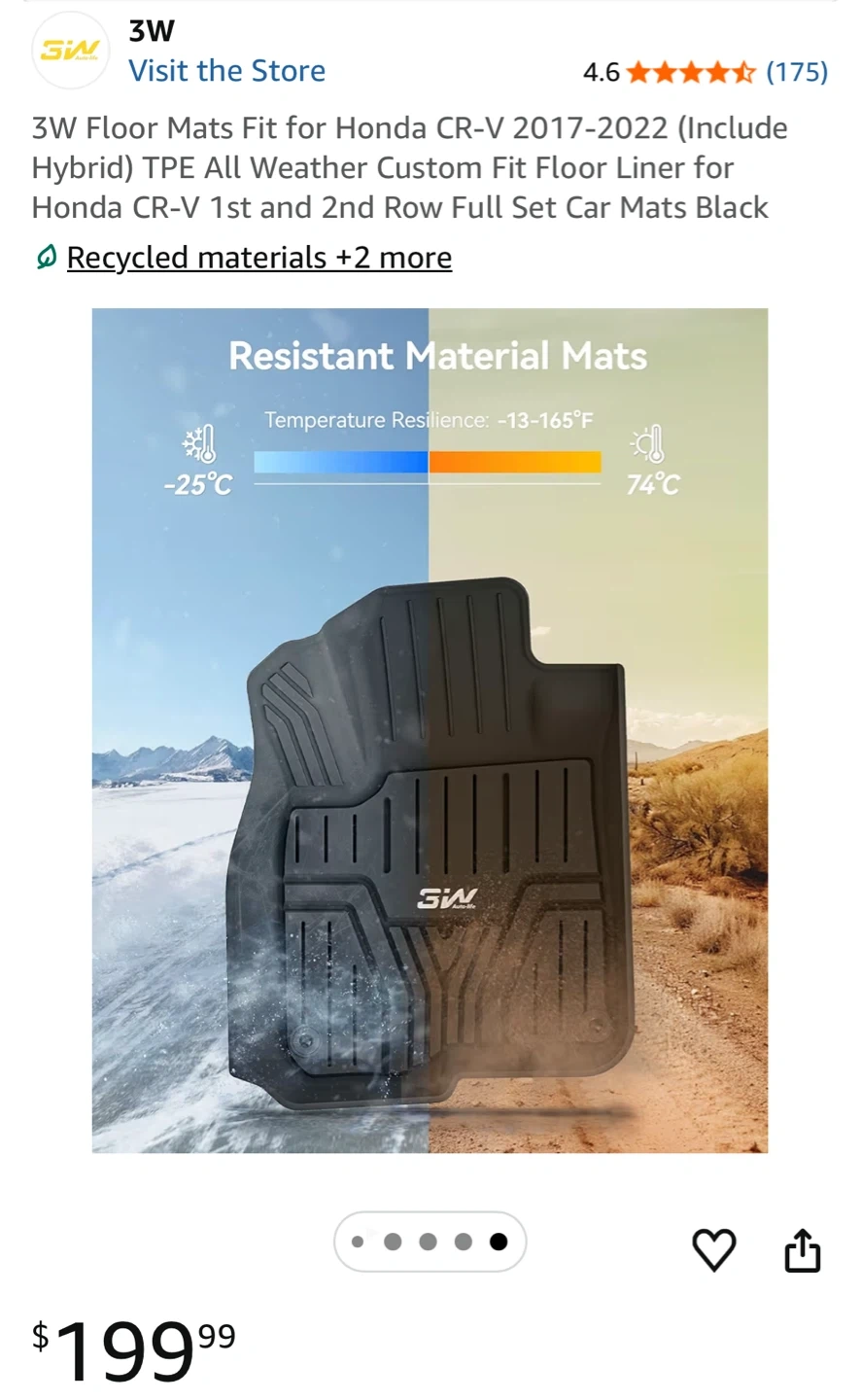 Keep your CR-V interior in showroom condition! πŸŽοΈπŸ’¨ Full set of 3W Custom Fit floor liners. πŸ› οΈ Fit: Honda CR-V 2017-2022 Fits Hybrid models. β›ˆοΈ Extreme Protection: Waterproof, salt, and mud resistant. 🌿 High-End TPE: Eco-friendly, odorless, and heavy-duty. πŸ’Ž Condition: 100% Brand New in original box.
