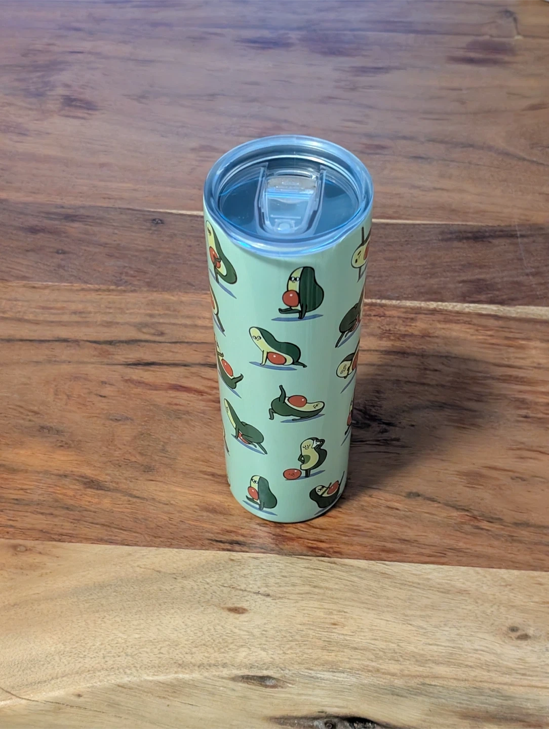 This mint green tumbler features a fun all-over print of avocados in various poses. It's perfect for keeping your drinks at the right temperature. Great for anyone who loves avocados!