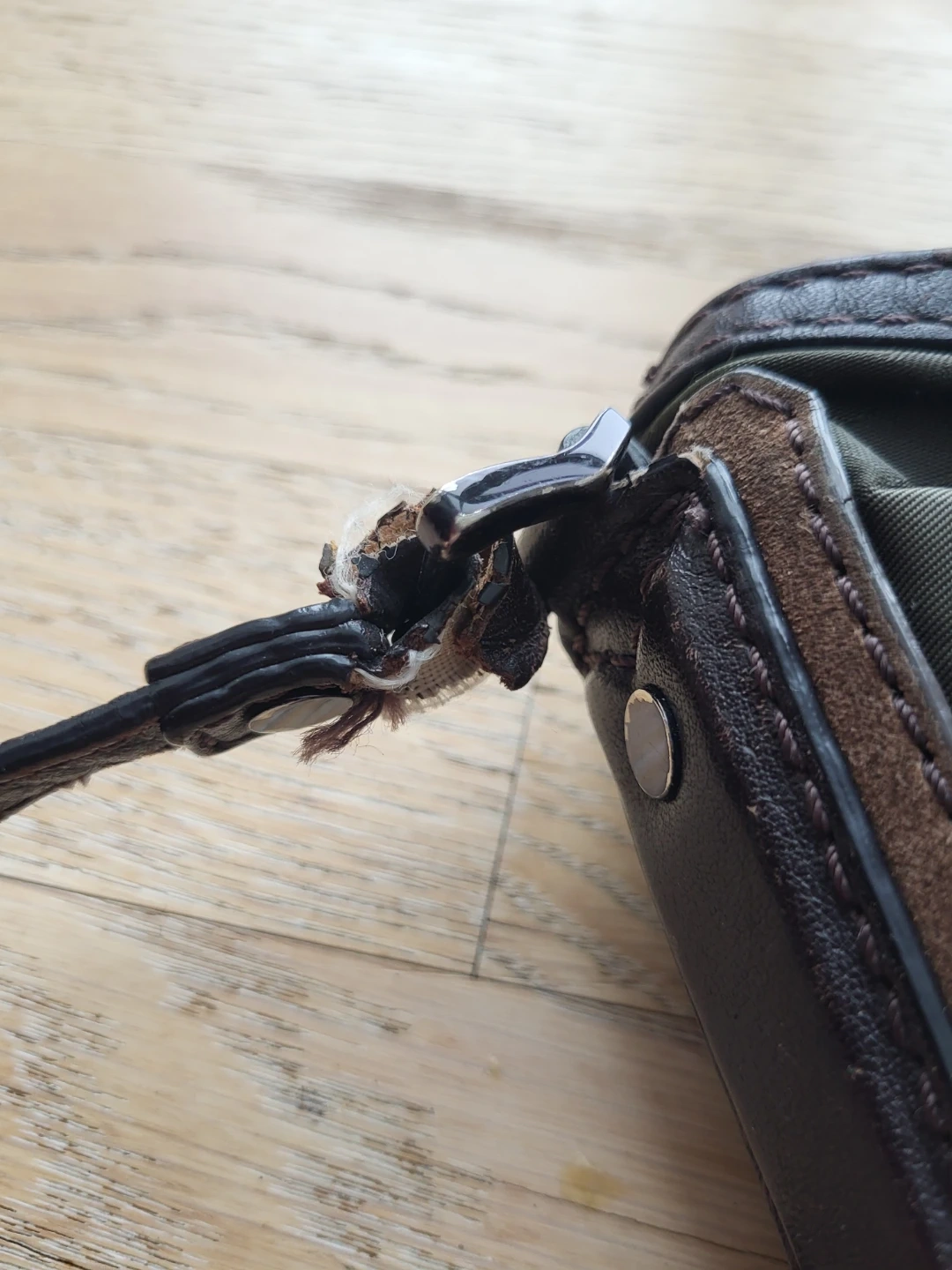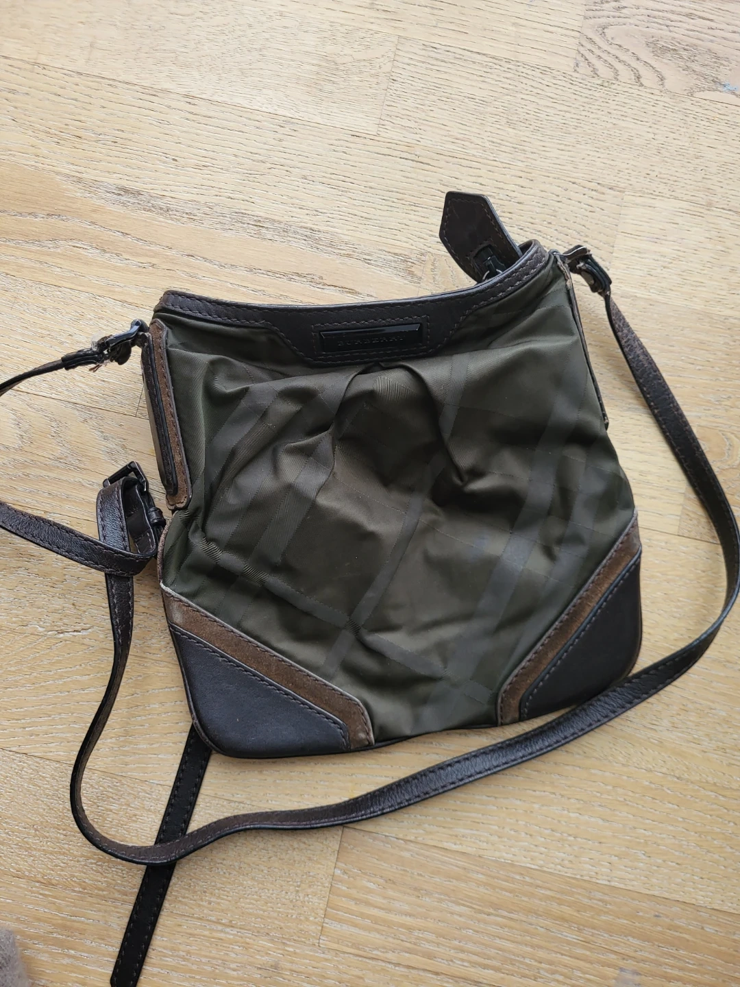 Selling a Burberry crossbody bag. It's in gently used condition, with worn strap at the top. Please see the photos for details!