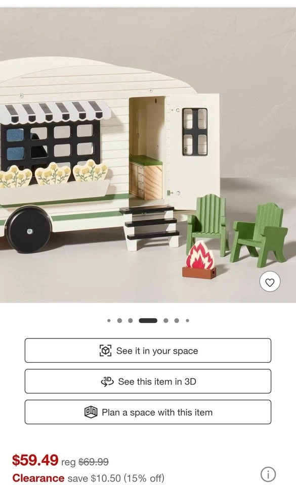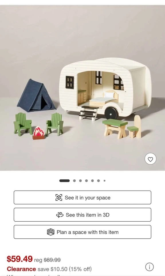 New from Target, doll house wooden camper set for kids. New in box, box is a little tired. Original price was $59.99, selling for $20. Pick up in West Chicago at 59 and Smith Rd. Cash or Zelle accepted.