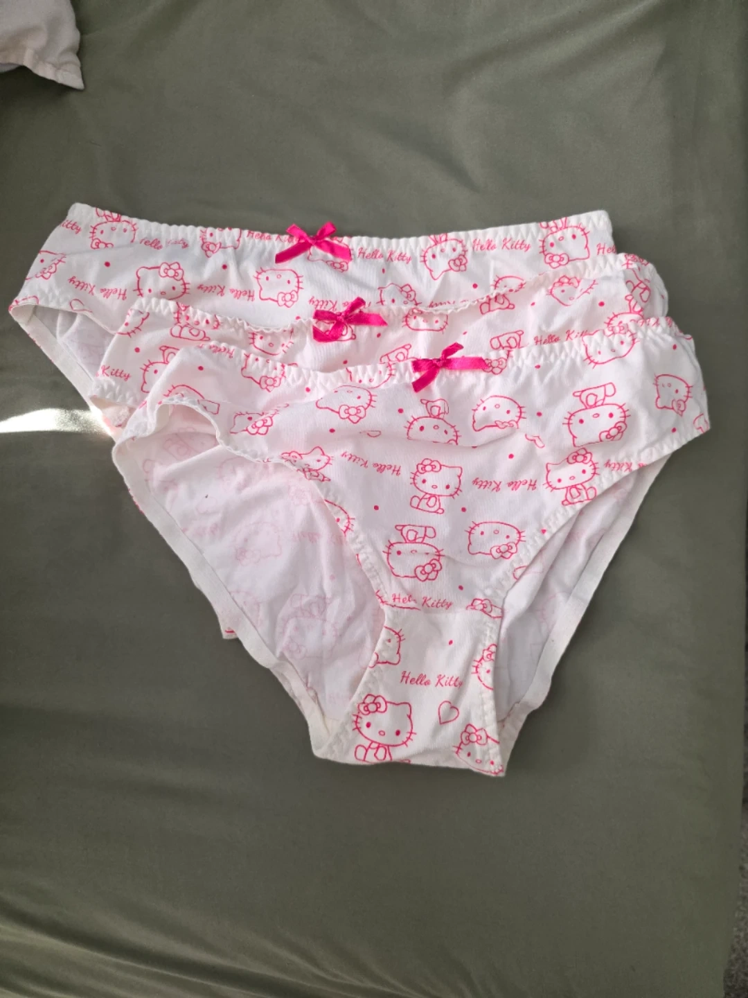 Three pairs of Hello Kitty underwear - brand new neaver worn. I forgot i had them. White with pink Hello Kitty pattern. Decorated with small pink bows. I believe its a medium to large size. Open to reasonable offers