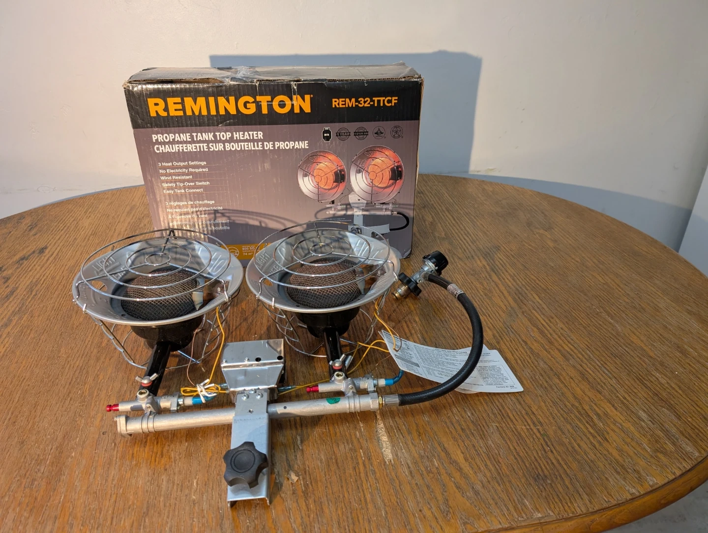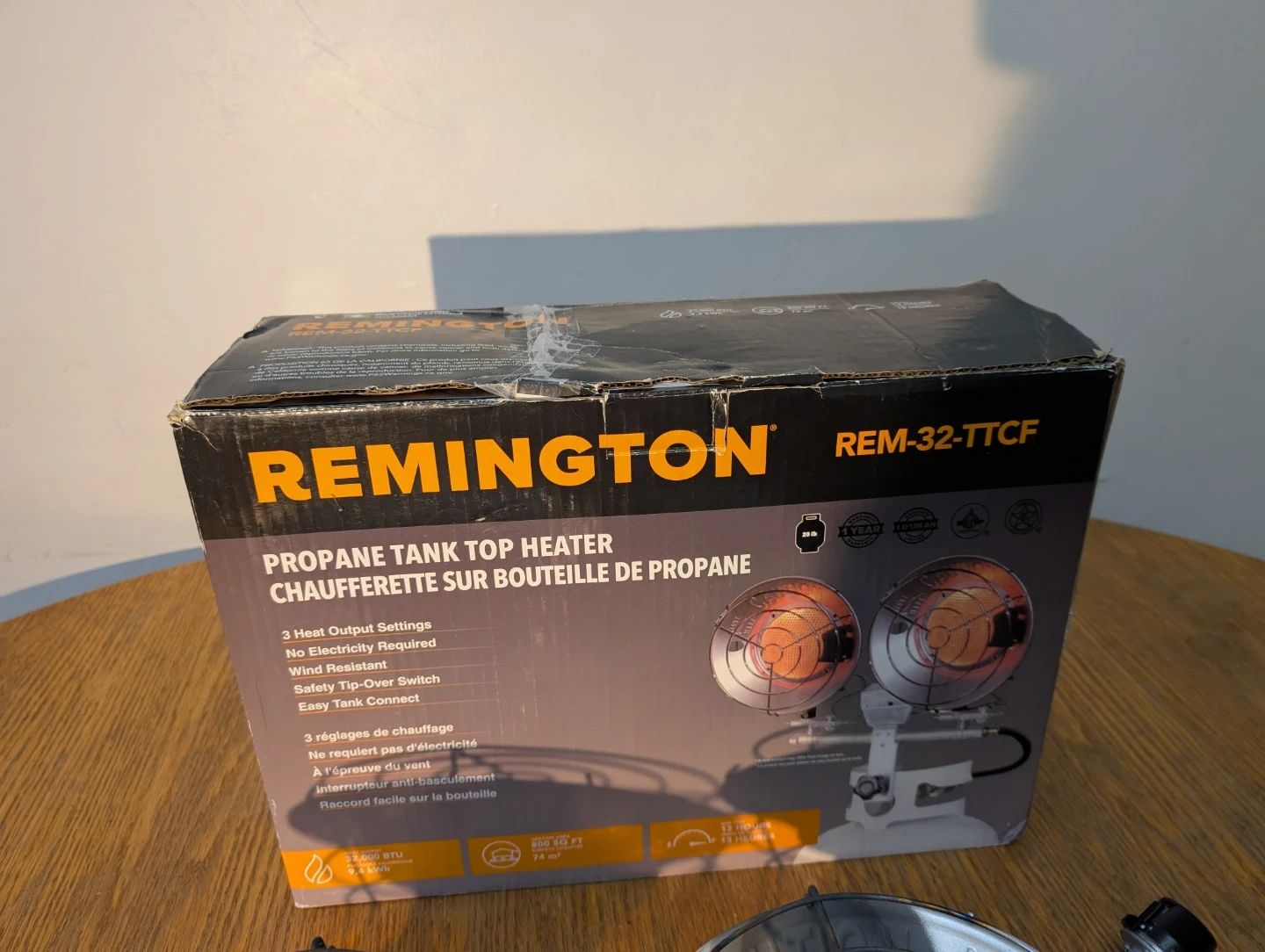This Remington propane tank top heater offers 3 heat output settings and doesn't require electricity. It's wind resistant and features a safety tip-over switch with easy tank connect. This heater is great for keeping outdoor spaces warm.