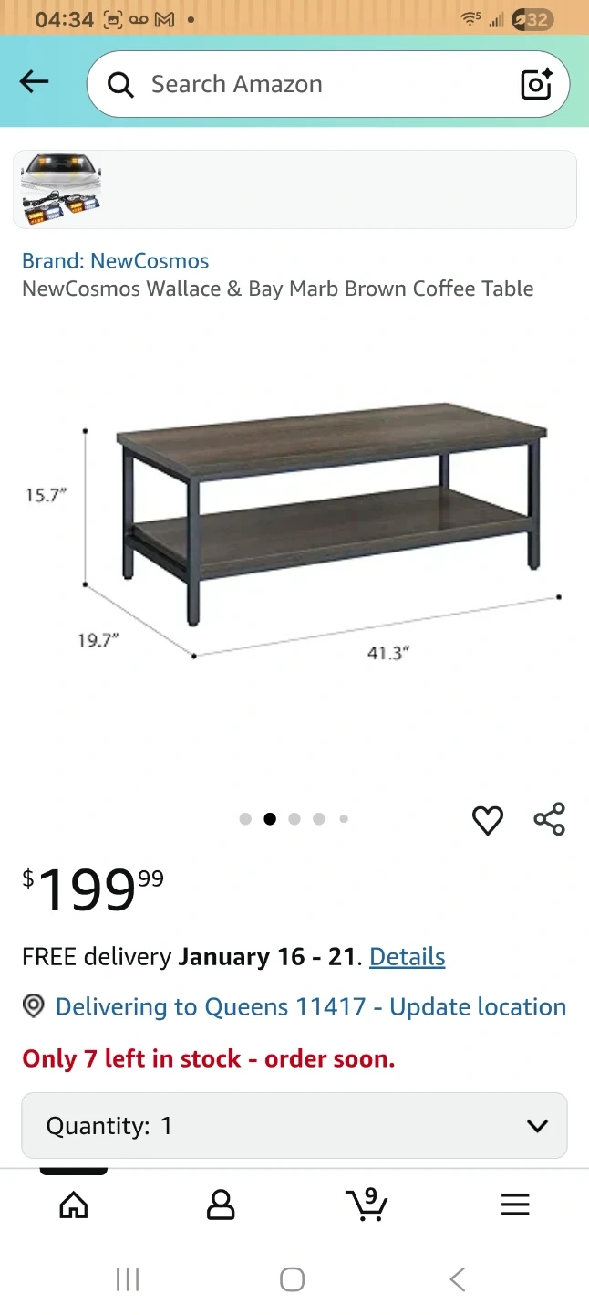 Selling a NewCosmos coffee table in brown. It's in great condition and ready for a new living room! The dimensions are approximately 15.7" x 19.7" x 41.3".