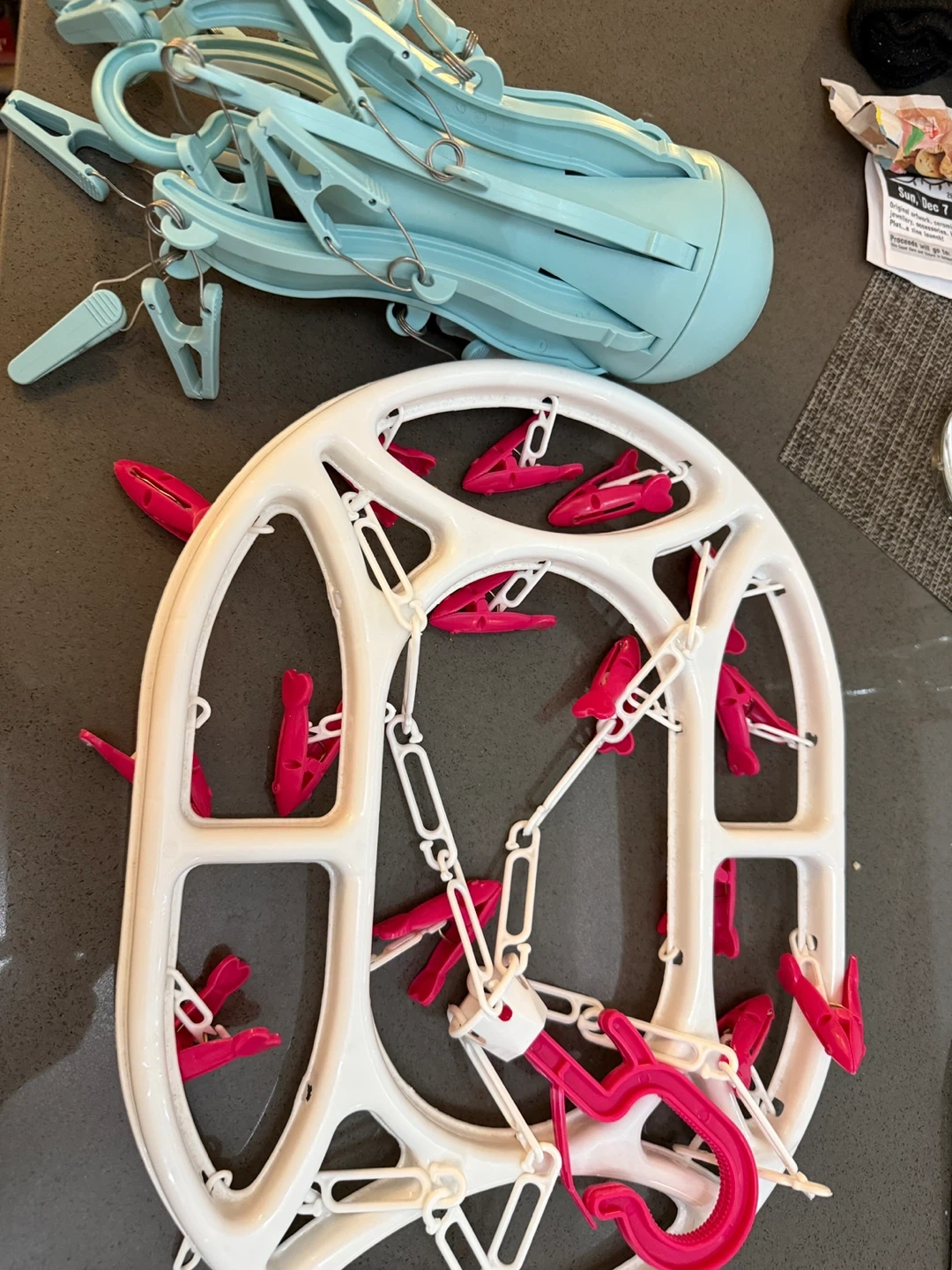 Selling a laundry drying rack with clips! It's in great shape and ready to use. Perfect for small spaces or delicate items. Comes with multiple clips to hold your clothes securely while they dry