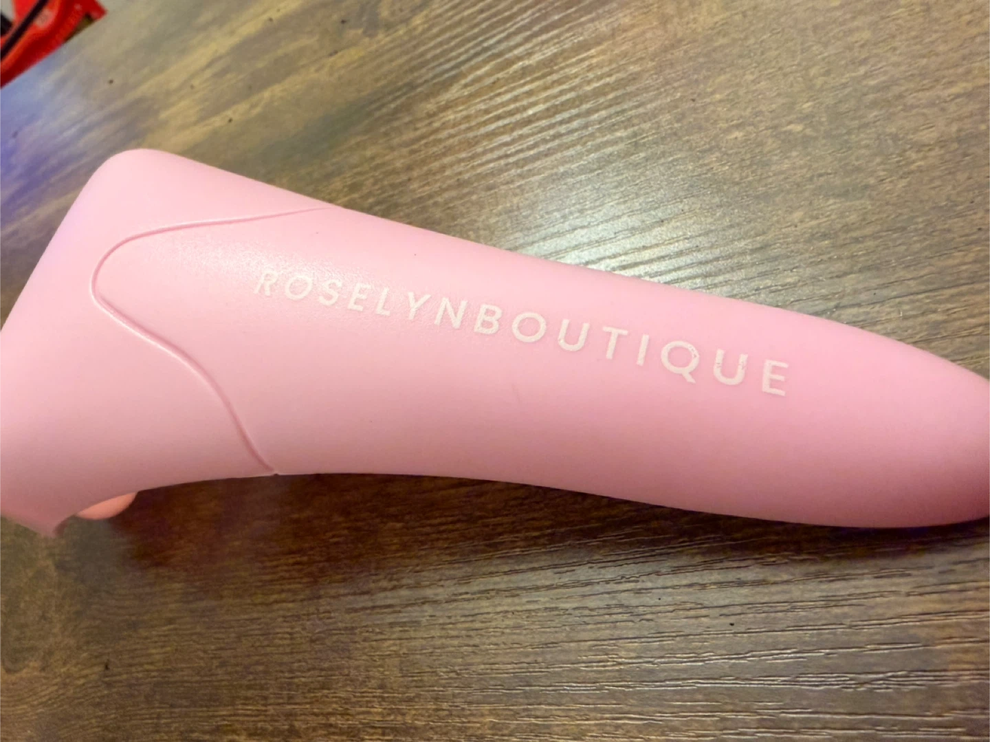 This pink ice roller is from Roselyn Boutique. It's designed to help cool and de-puff the skin. It's made of durable plastic and features a detachable roller head for easy cleaning.