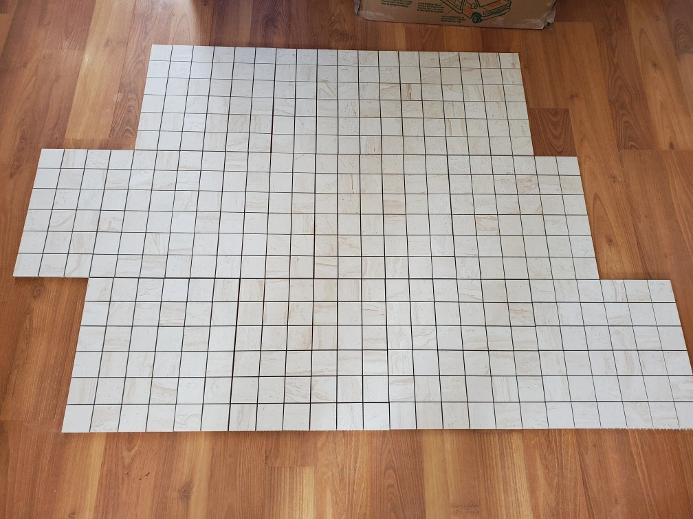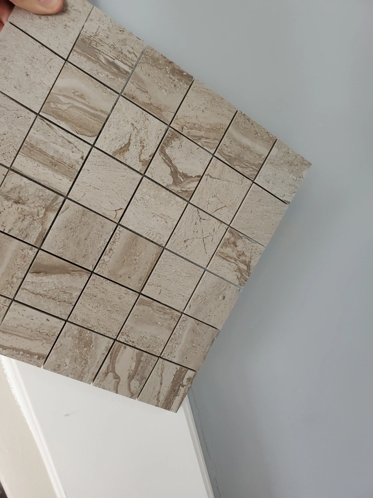 brand new, in the boxmosaic tiles. Each sheet contains numerous small square tiles. Light grey and white colour variations. Perfect for backsplashes or other projects. 10 sq ft per box...beige and brown and grey and white colors, $70 firm per box. great for showers, floors, bathroom, kitchen, backsplash