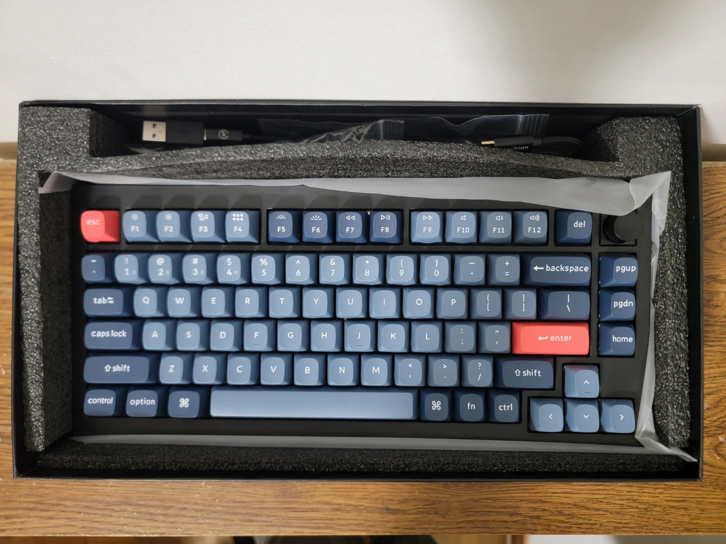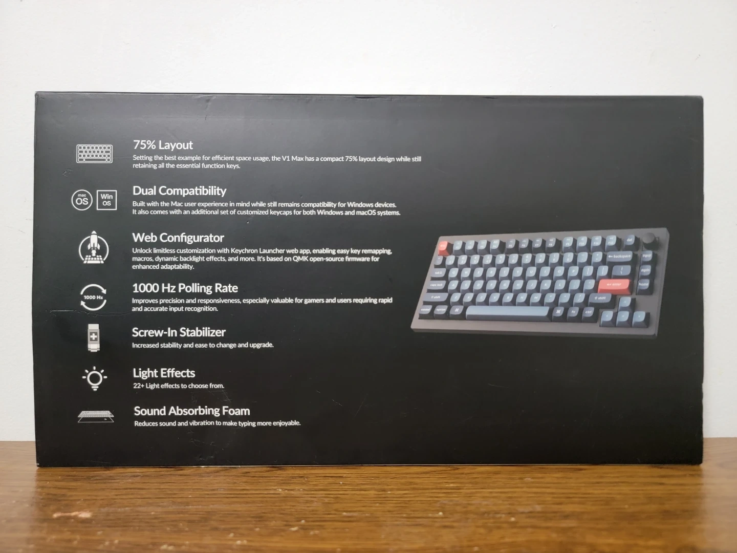 Keychron v1 max tri mode (bluetooth/wireless/wired) mechanical keyboard. Backlit rgb, hotswappable gateron banana switches. Box includes cable, cable adapter, 2.4gz dongles, 2.4gz dongle extender, keycap/switch puller, extra keycaps/screws and screwdriver/Allen key.