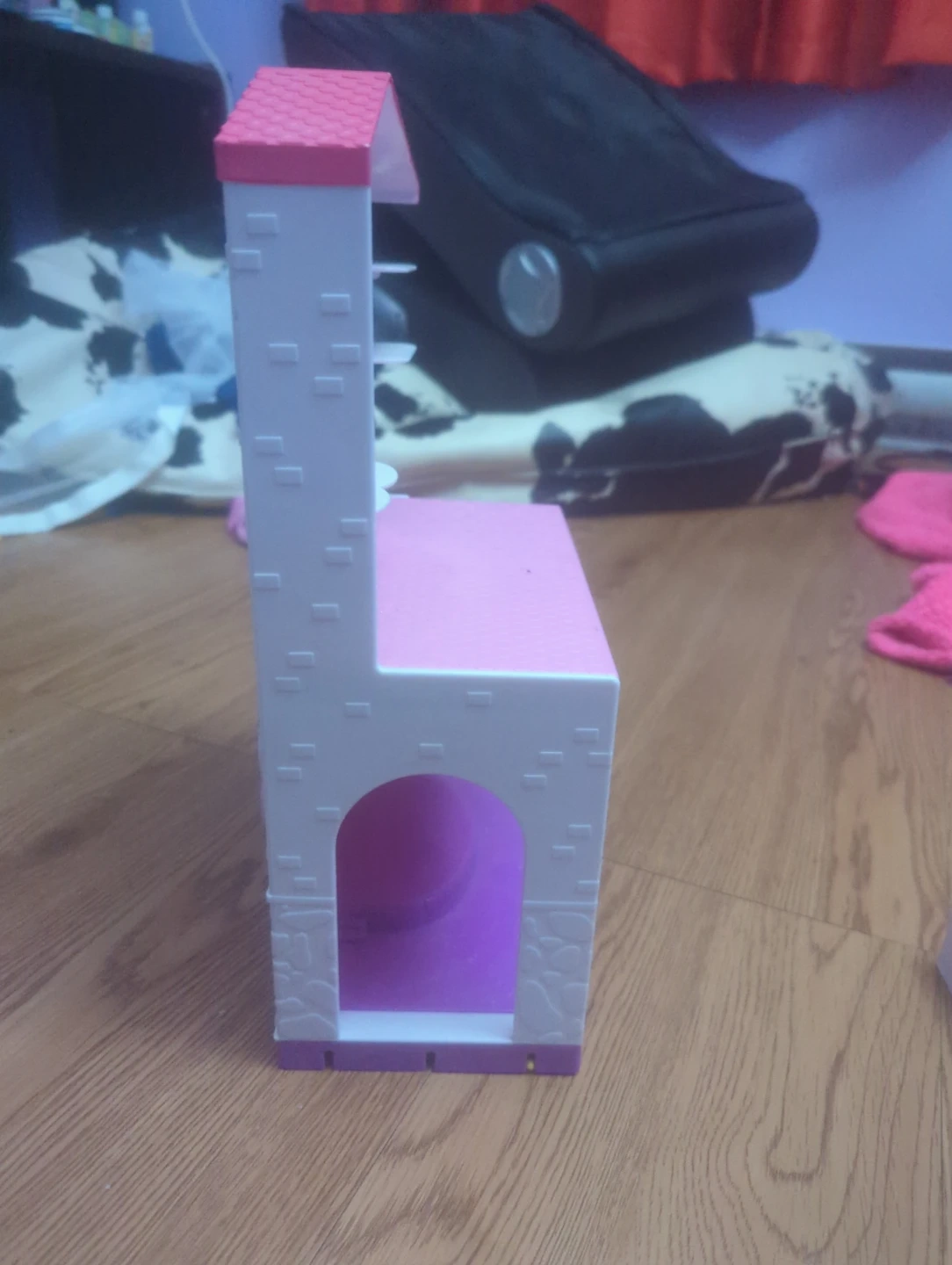 Selling a Shopkins toy house, perfect for imaginative play! It's white with pink accents and has a fun, open design. Great for kids who love playing with dolls and creating their own little worlds