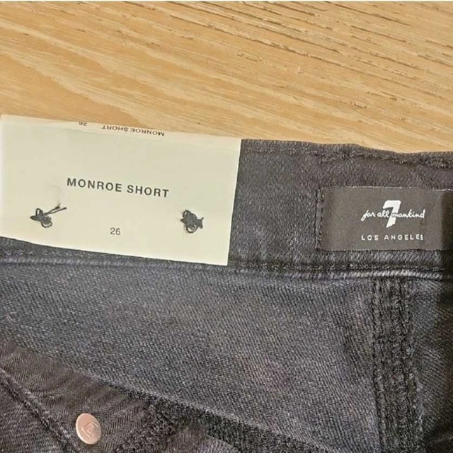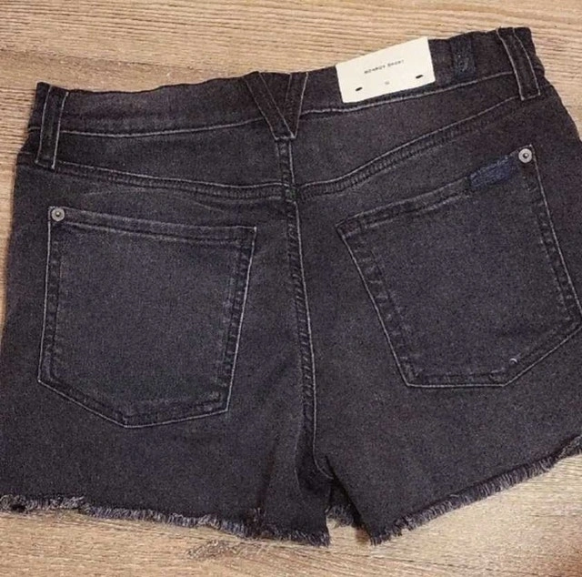 These 7 For All Mankind Monroe denim shorts are a stylish addition to any wardrobe, featuring a button-fly closure and a trendy frayed hem. They are in excellent condition. Brand: 7 For All Mankind, Style: Monroe Short, Size: 26, Colour: Black, Closure: Button-fly, Hem: Frayed. Condition: New. Size: Small (4-6). Payment accepted: Cashless payment, Cash.