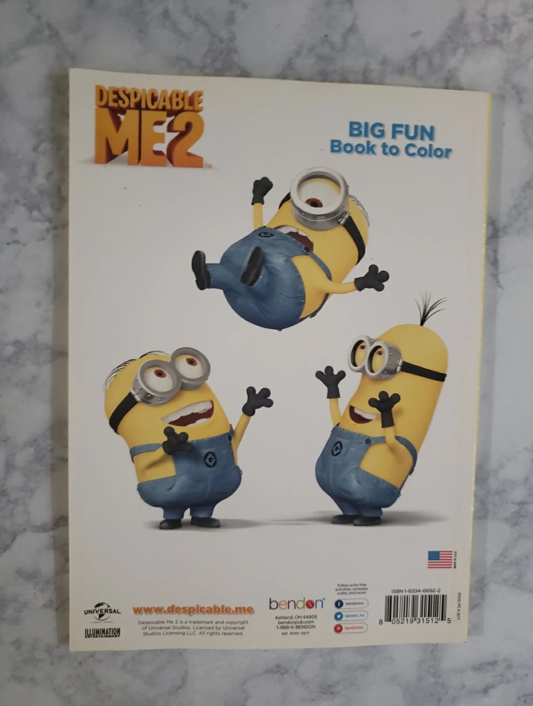 This is a Despicable Me 2 Big Fun Book to Color. It features characters from the movie for kids to color. Coloring pages include Gru and the Minions. Published by Bendon.