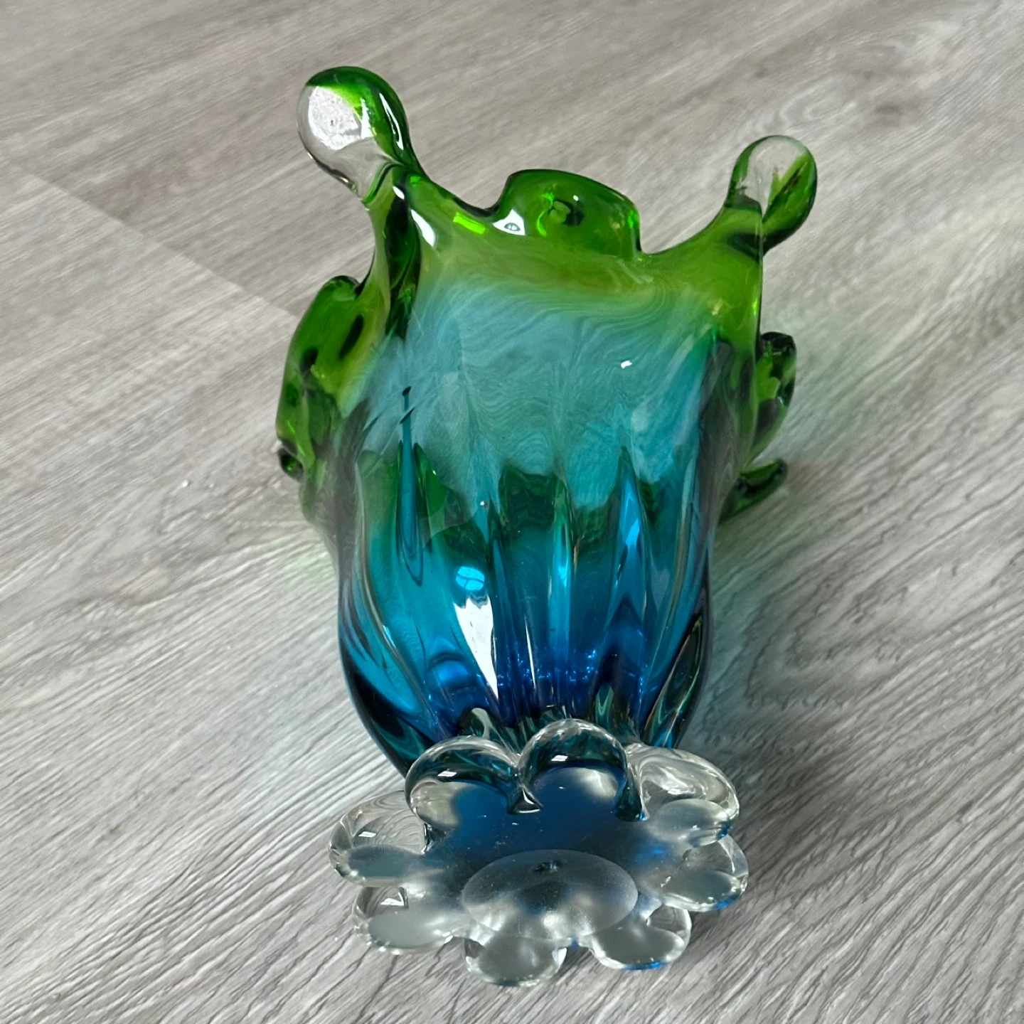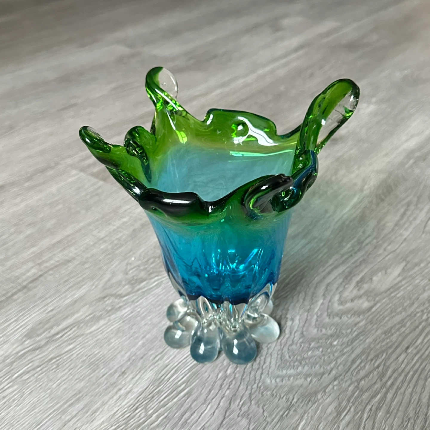 MCM Style Aqua Blue & Green Swung Finger Pedestal Art Vase
