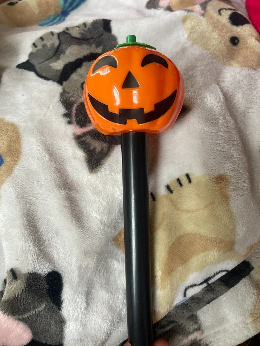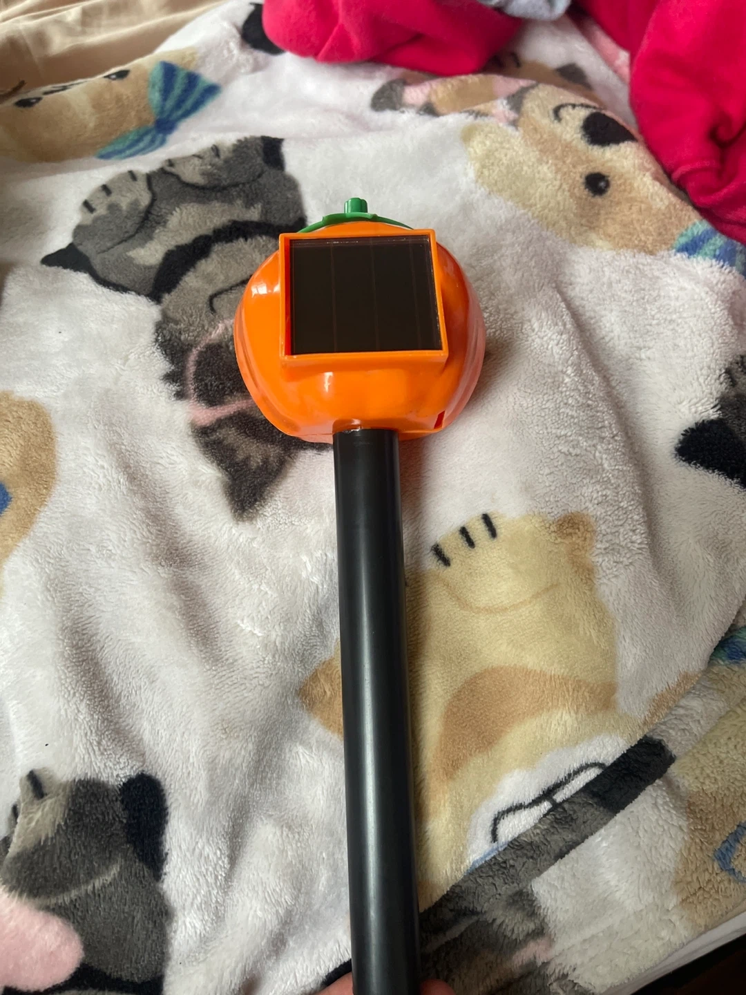 This is a fun Halloween pumpkin solar light! It's designed to light up your yard or garden with a festive glow. It's solar-powered, so no cords are needed.