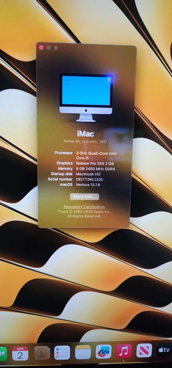 Selling my 21.5-inch Retina 4K iMac (2017 model) in excellent aesthetic and functional condition. This is a powerful machine, perfect for graphic design, photo editing, office work, or students who need a high-end display and reliable performance.