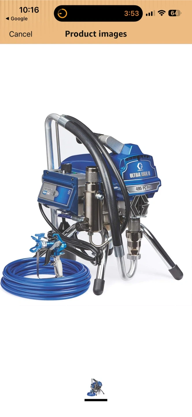 This Graco Ultra Max II 495 PC Pro is an electric airless paint sprayer. It's a stand model with Bluetooth. Comes with hose and sprayer gun, whip and extension.