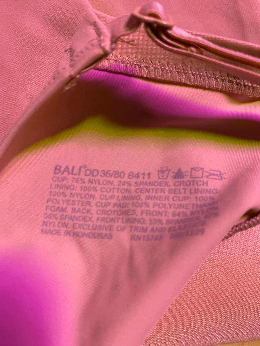 Buy & SellBali DD 36/80 BraBali DD 36/80 Bra$5This is a Bali bra, size DD 36/80. It's made of 76% nylon and 24% spandex with a 100% cotton lining in the cup. The cup pad is 100% polyurethane foam. Made in Honduras.ConditionLike newBrandBaliWHERE TO MEET11207View MapSELLERverifiedNephyEast New York750 reviews1 chats·0 favorites·14 viewsSEND CHAT TO SELLERHi Nephy! I’m interested in your listing.Hi Nephy! I’m interested in your listing.Get the Karrot app to chatSign In to chat