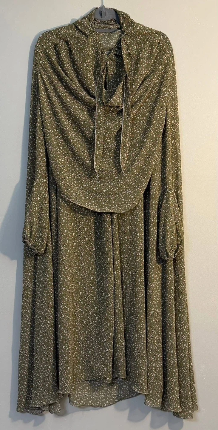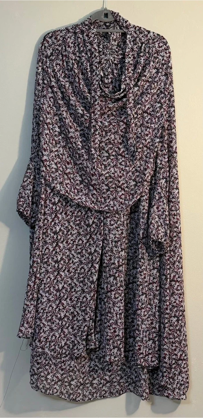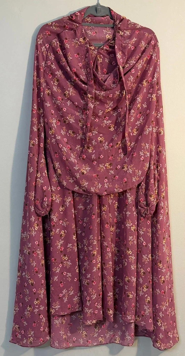 This is a beautiful floral prayer dress. It's made of lightweight fabric and features a comfortable, flowy design. It's perfect for daily use.