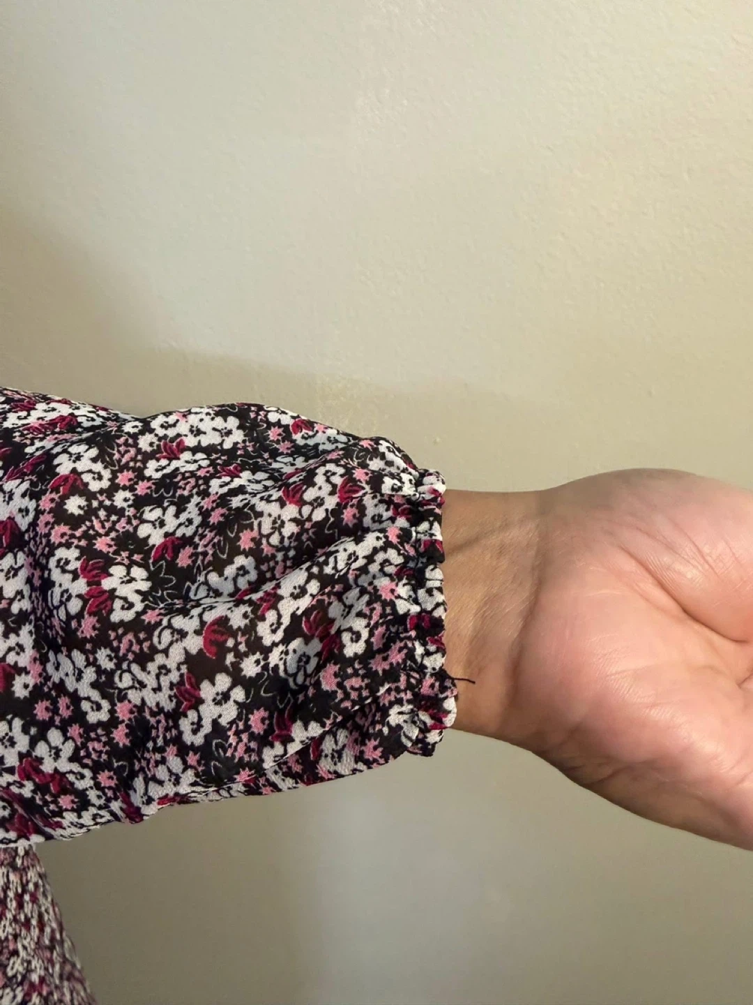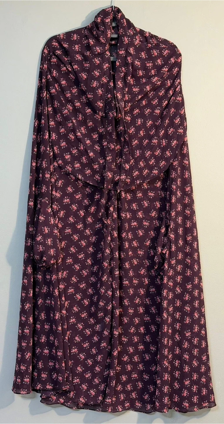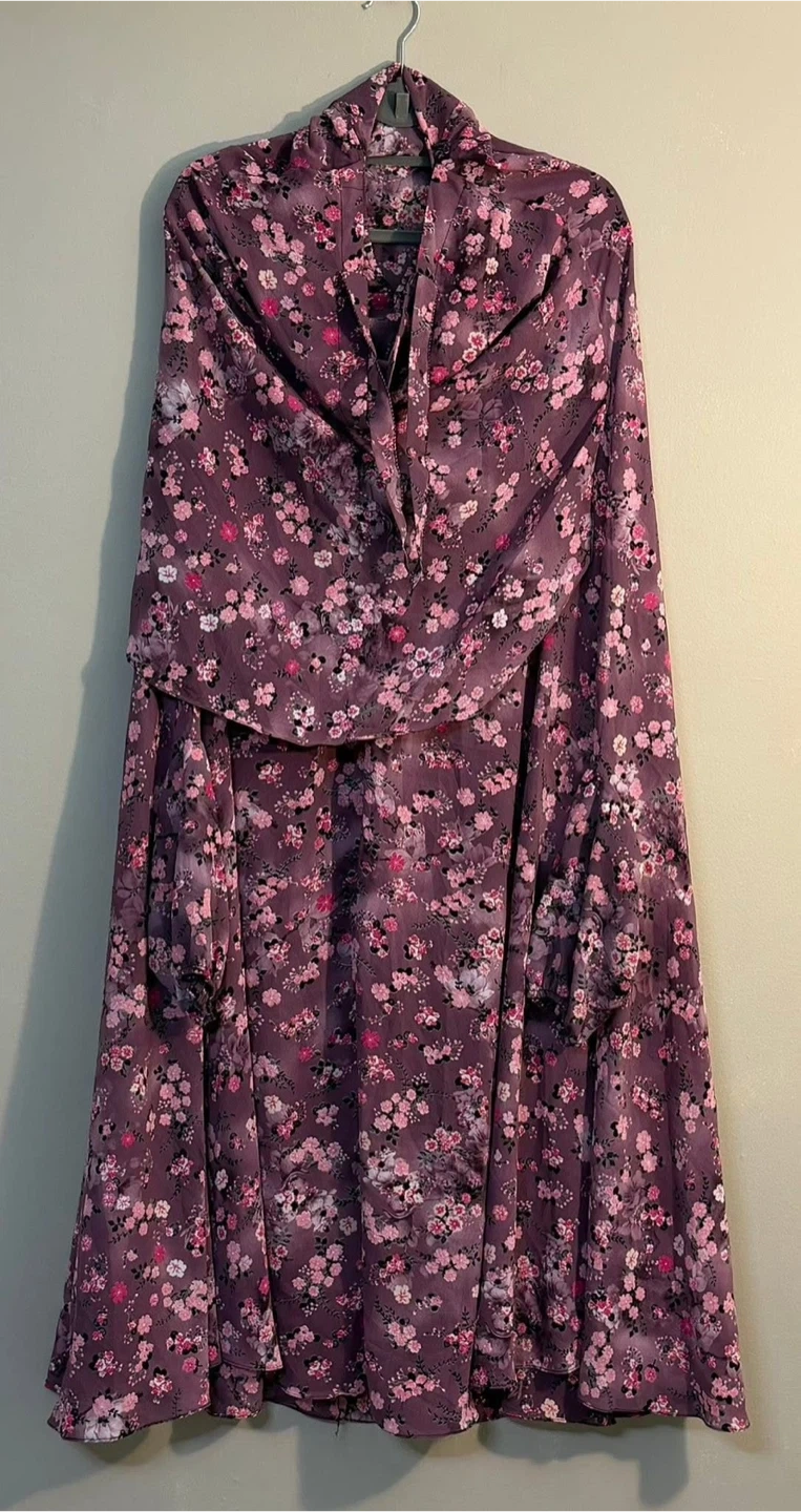 This is a beautiful floral prayer dress. It's made of lightweight fabric and features a comfortable, flowy design. It's perfect for daily use.