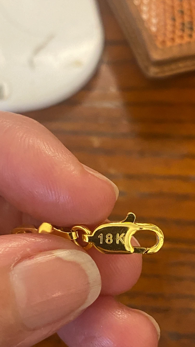 This is a beautiful 18K gold chain necklace. The clasp is stamped 18K. It's a classic design that's perfect for everyday wear or layering.Real gold plated 18 karat gold plated.
