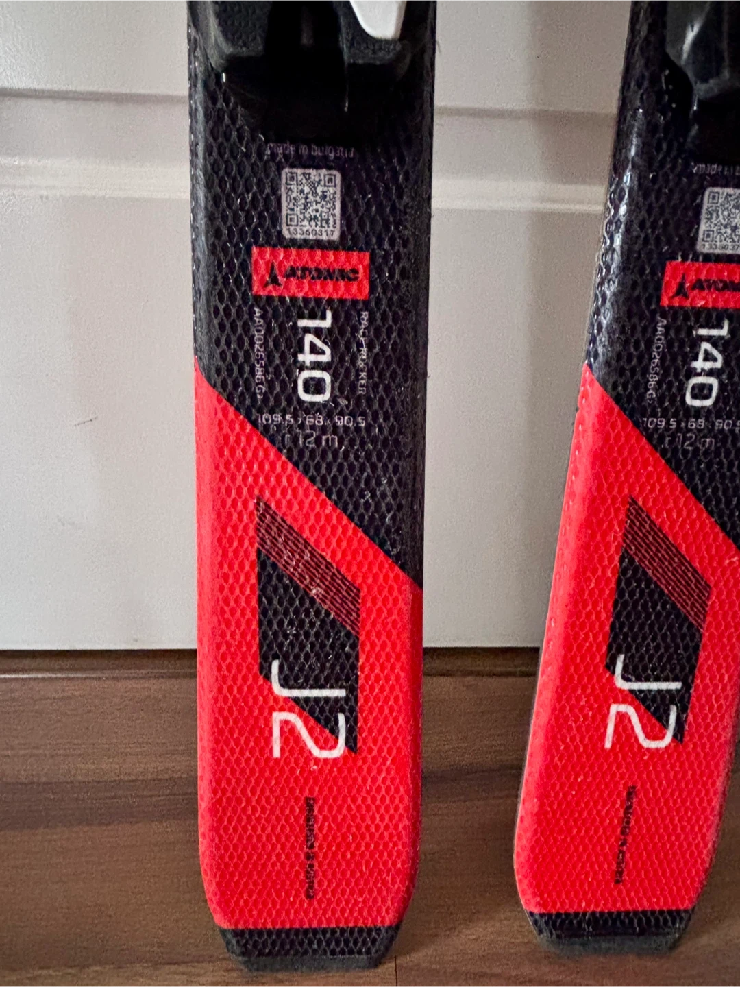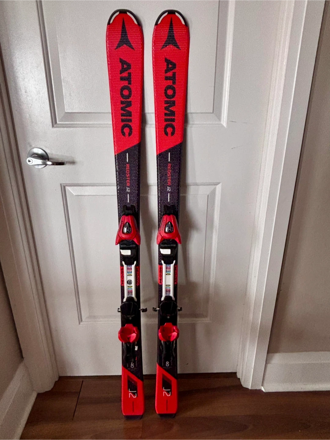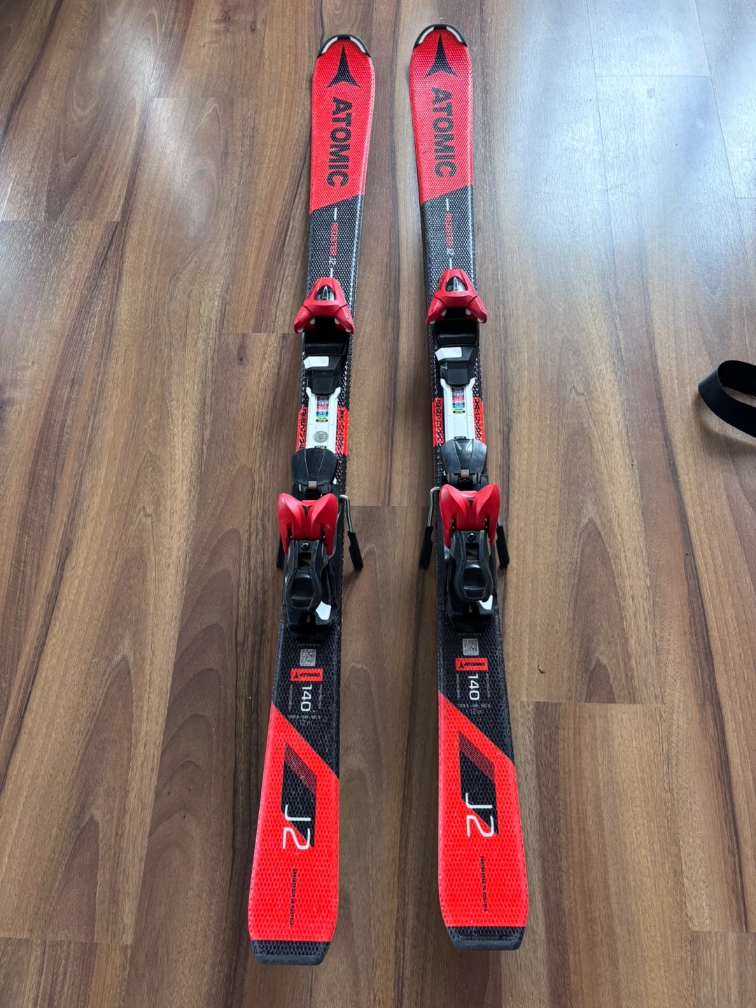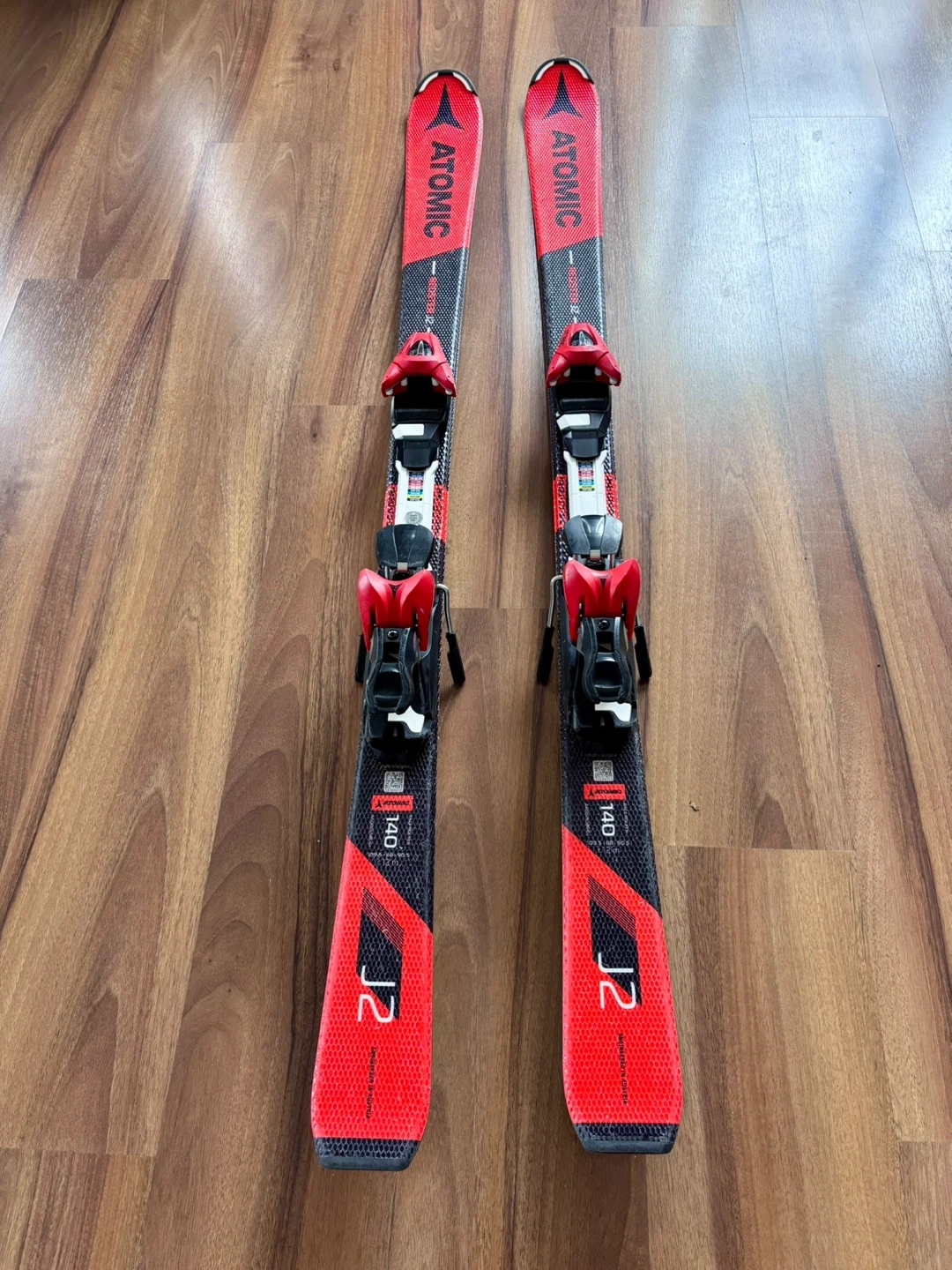 These Atomic J2 skis are perfect for young skiers looking to improve. They are 140cm in length and come with bindings already attached. Red and black design makes them look sharp on the slopes!