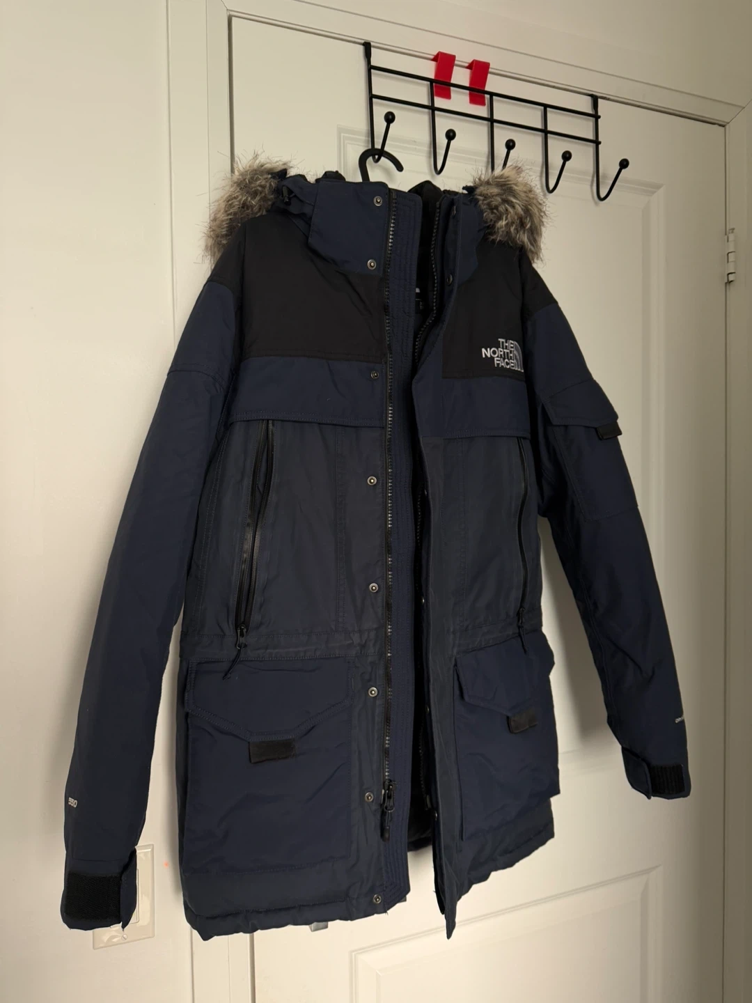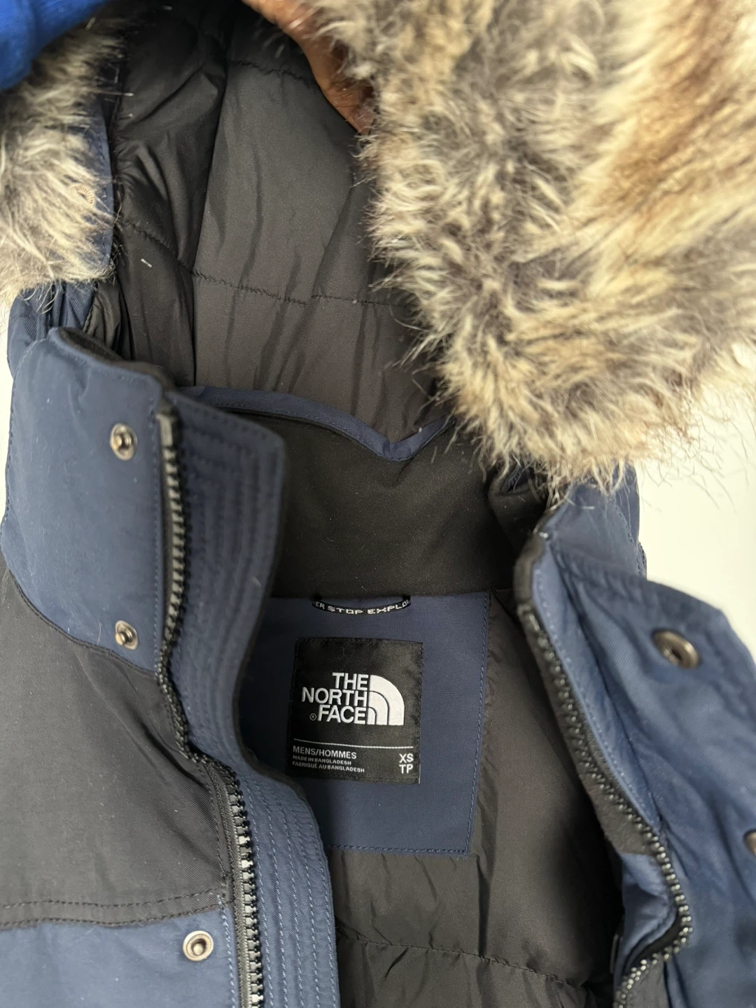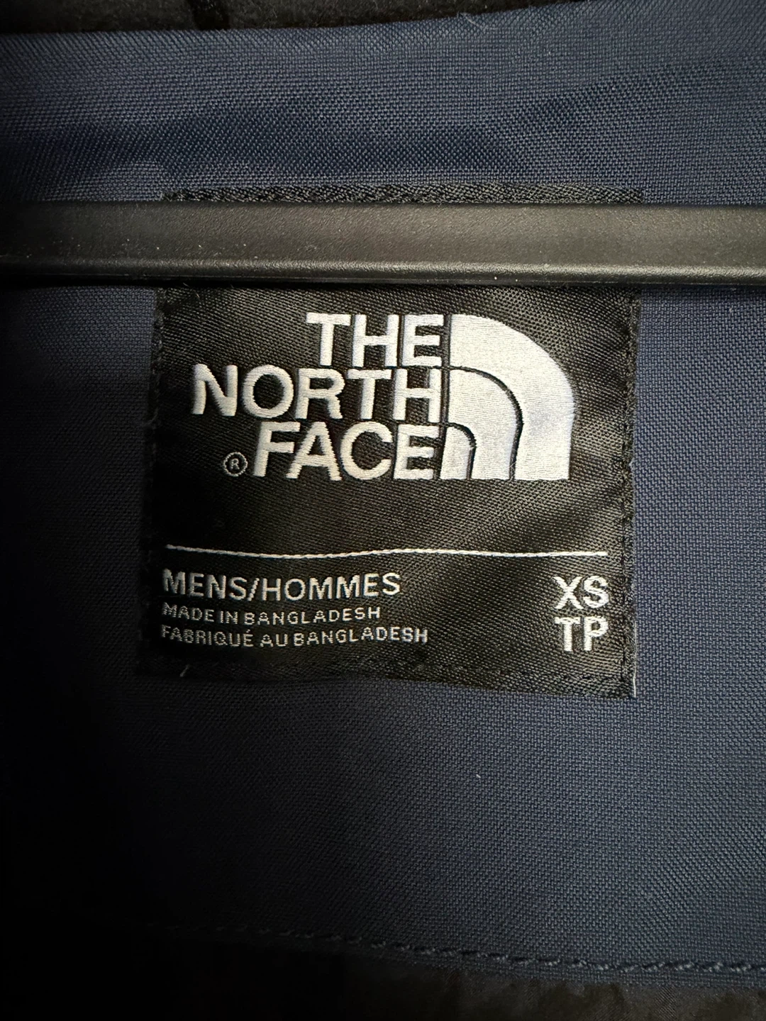This is a navy blue The North Face DryVent parka jacket. It's a men's/hommes size XS/TP.