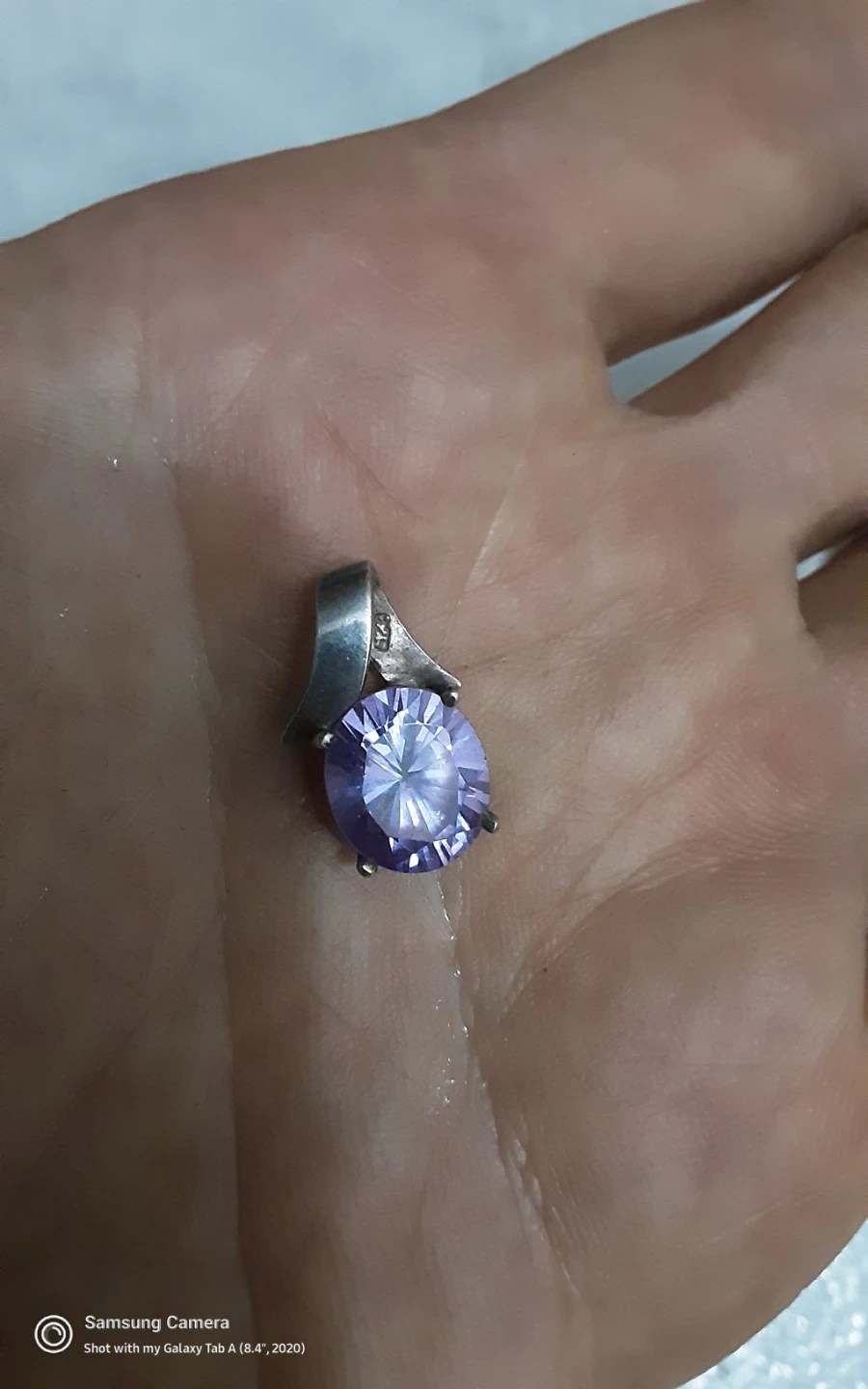 Sterling silver pendant featuring a round, faceted lavender stone. The bail is stamped "925". It's a lovely accessory for everyday wear.