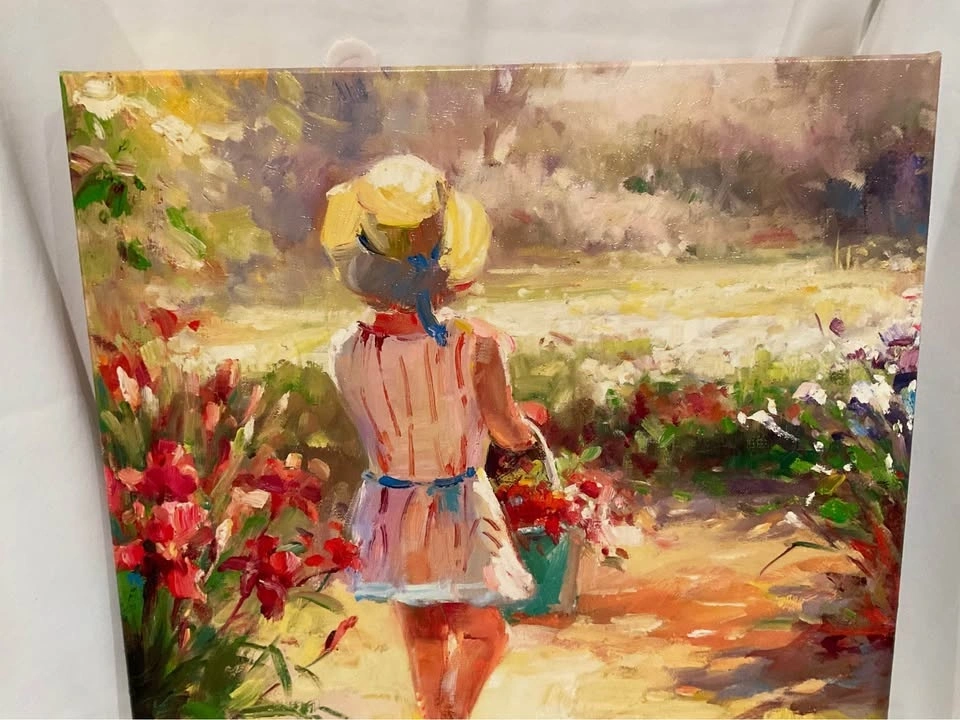 Oil Painting On Canvas Cottagecore "Girl With Basket"