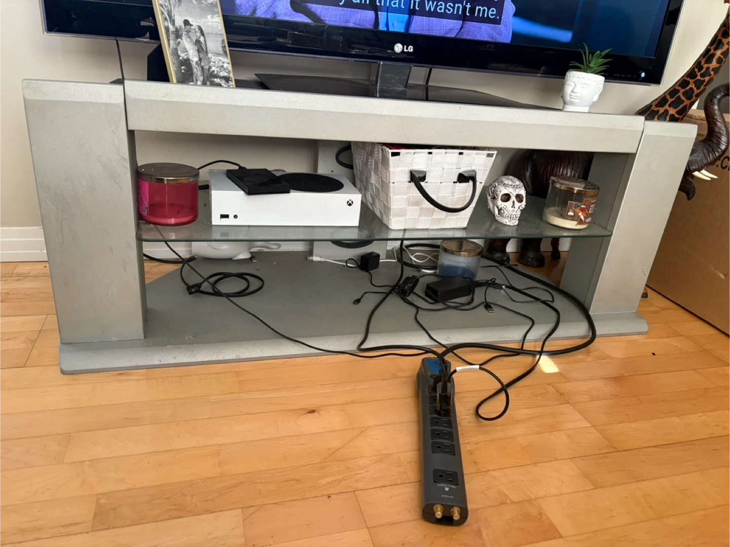 TV Stand with Glass Shelves