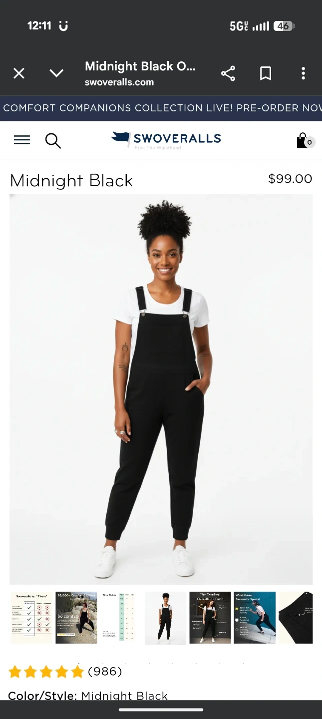 These are The Great Fantastic overalls in midnight black. They're made for comfort and feature a "Free the Waistband" design. Perfect for casual wear!