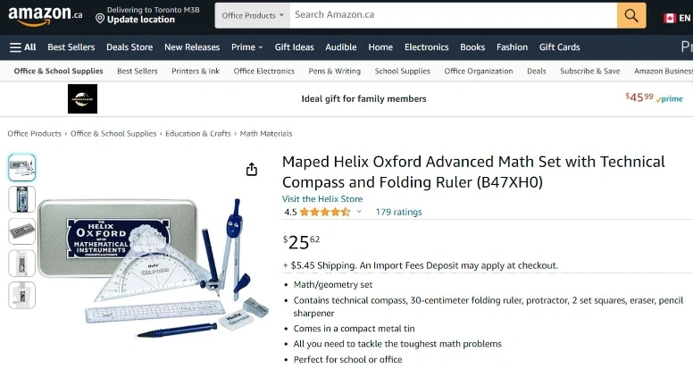 Helix Oxford. Advanced Math Set with Technical Compass and Folding Ruler.