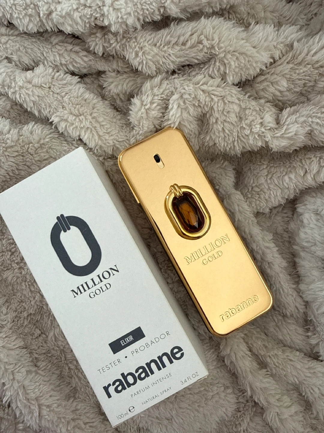 This is the Paco Rabanne 1 Million Gold Elixir Eau de Parfum Intense. It's a 100ml natural spray. The scent is a tester and comes in its original box.