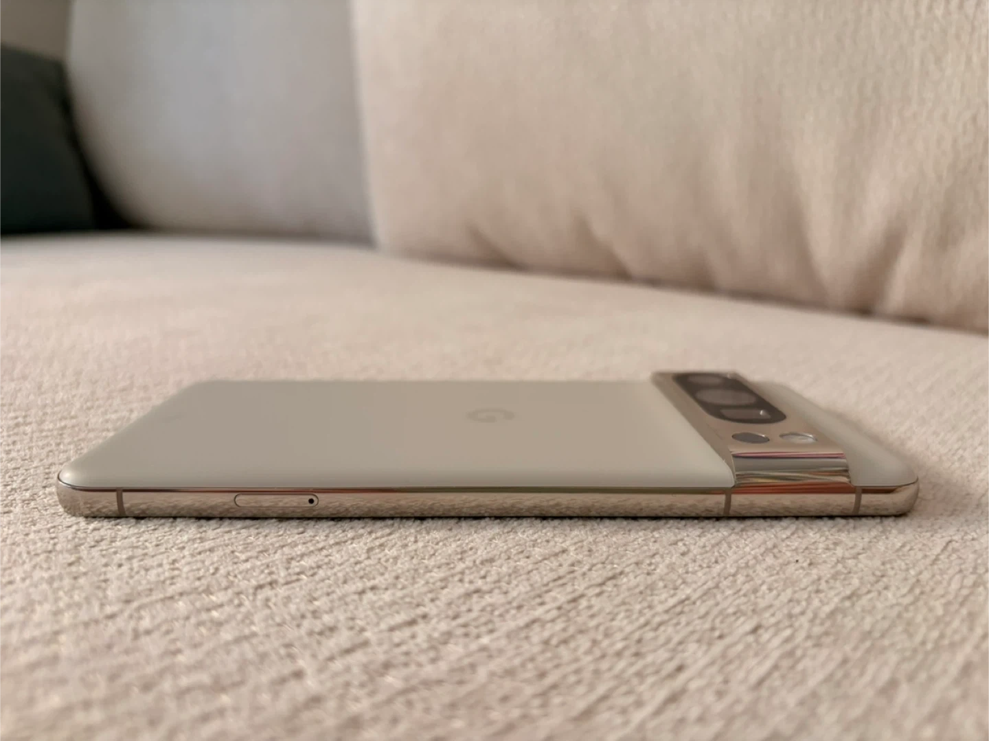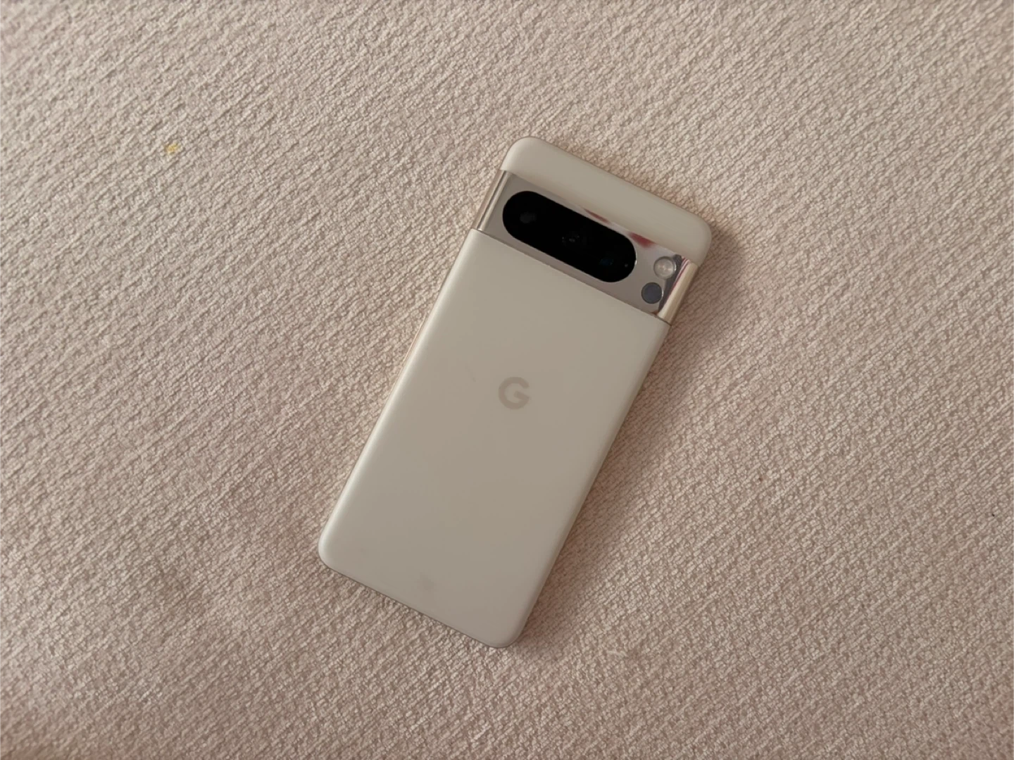 Selling a Google Pixel 8 Pro smartphone in a light color (Beige). It has a distinctive camera bar on the back.