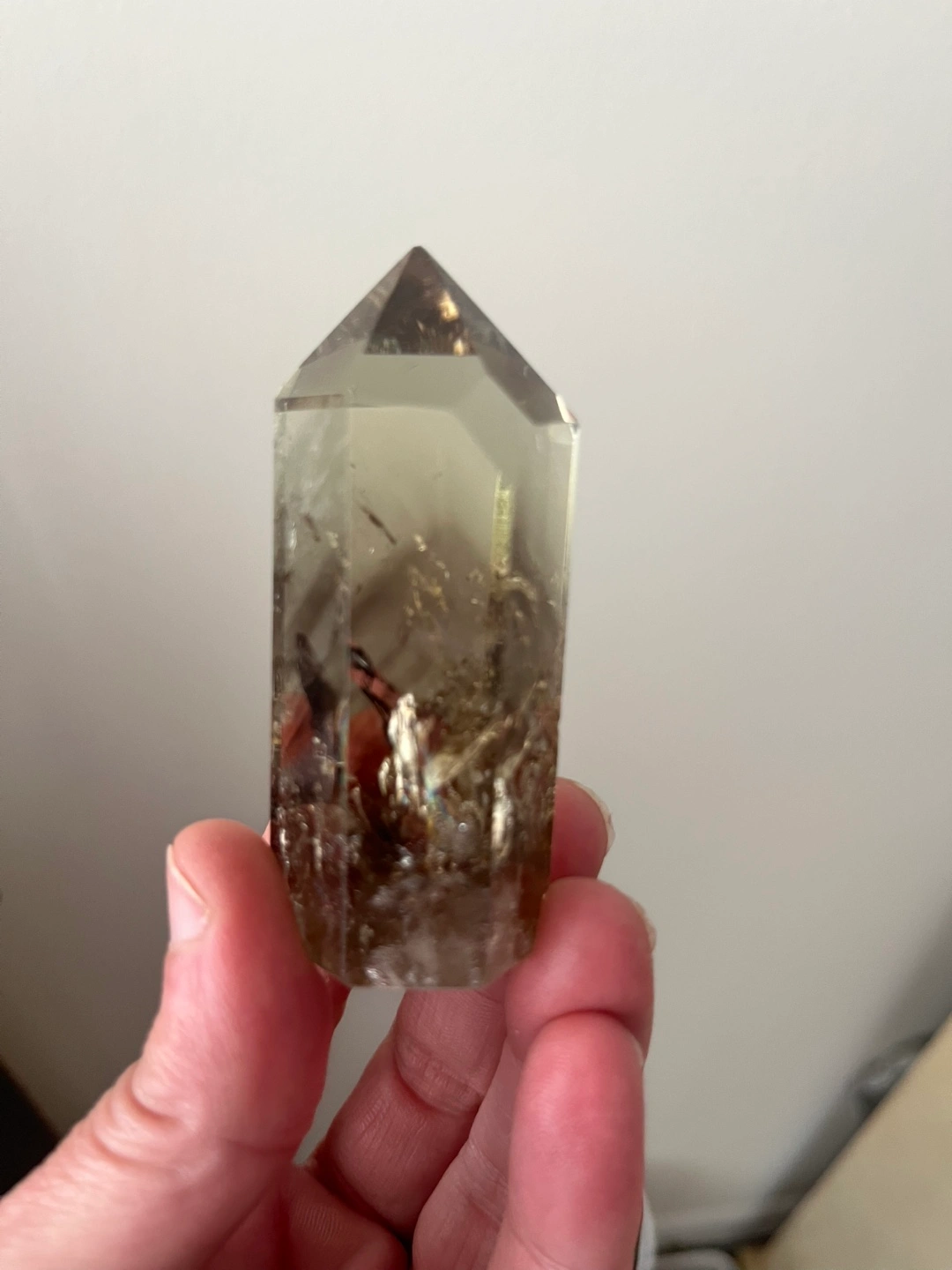 Beautiful smoky quartz point with phantom point inside. Unique inclusions! Great for crystal healing or collection.