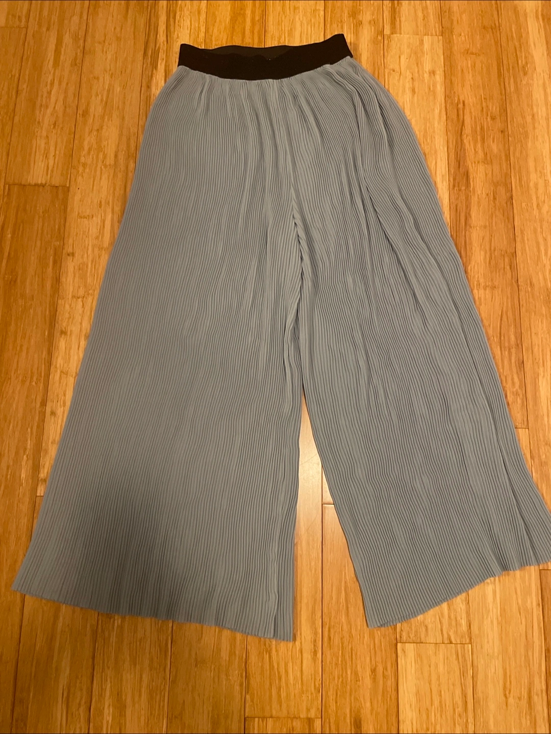 Dusty blue culottes. Pleated design. Wide leg. Elastic waistband. Lightweight fabric. Great for spring and summer.