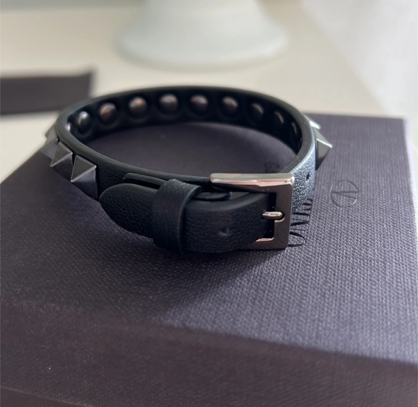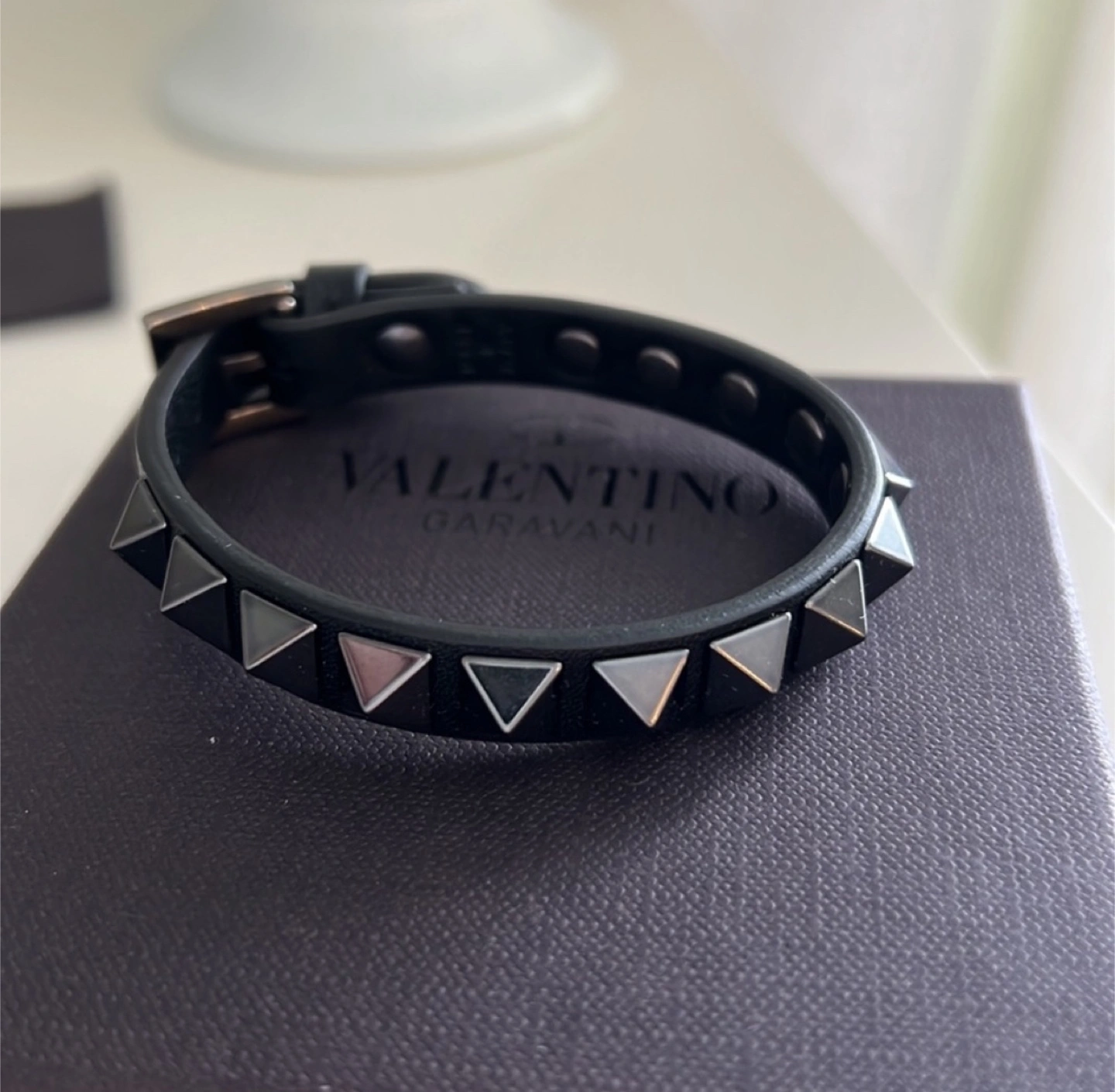 Valentino Garavani: LEATHER ROCKSTUD BRACELET WITH STUDS